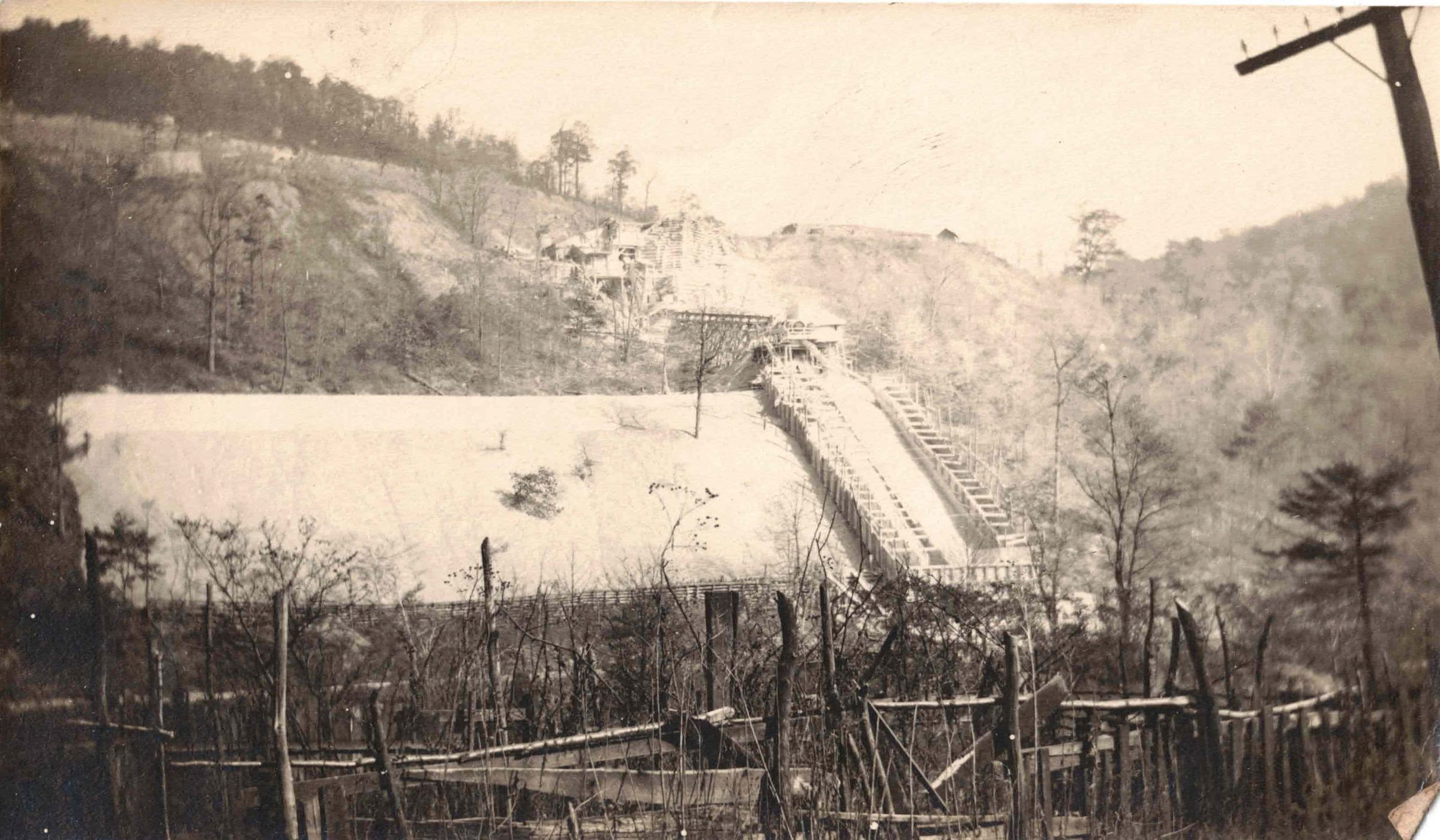 Photograph of an unidentified structure, possibly a toboggan run or a large industrial mining chute.