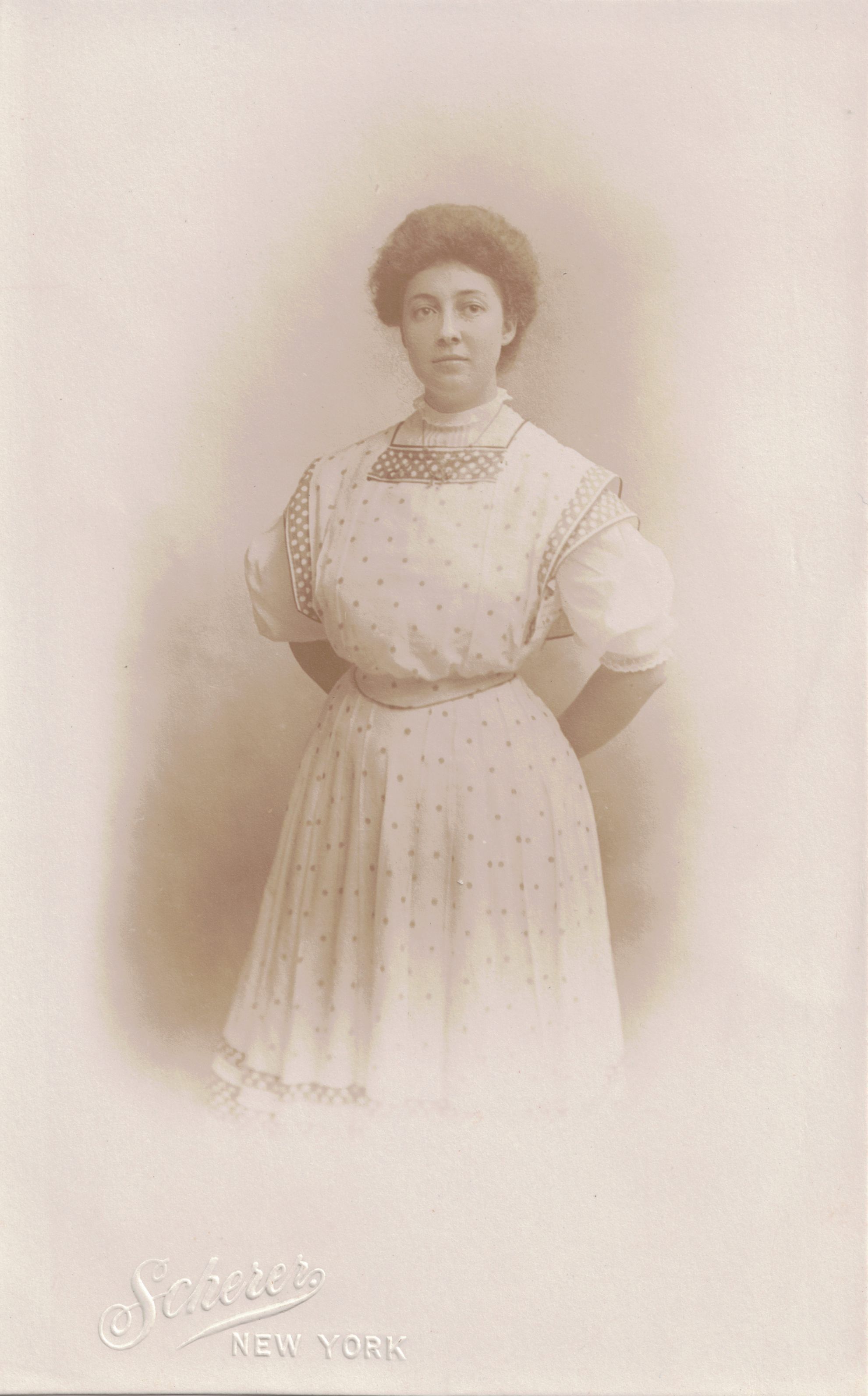 Portrait of Tarsilla Schuster printed on blank postcard backing. The studio name "Scherer, New York" is embossed on the front.