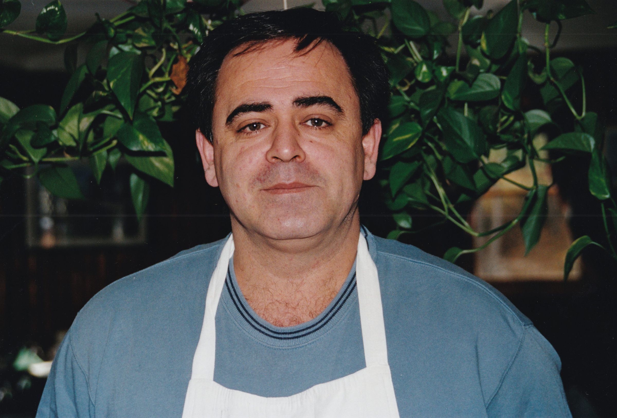 Color photograph of Enver Cecunjanin inside of his business, La Bella Ristorante. Portrait taken by Mary Lou Hanpeter Banks as part of her Soul Proprietor exhibition.