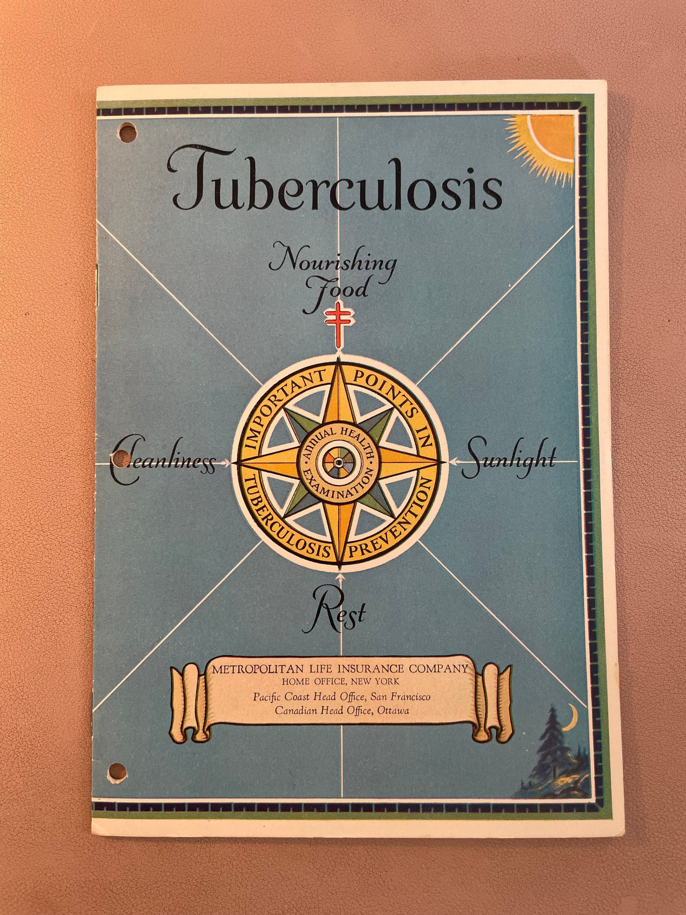 Booklet published by the Metropolitan Life Insurance Company, c. 1939. Prepared with the advice of the National Tuberculosis Association. Includes information on the causes, diagnosis, treatment, and prevention of tuberculosis. Color illustrations throughout. Has three-hole punch at left edge.Collection