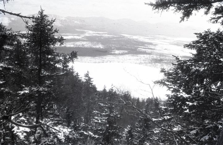 Negative of a snow and ice covered landscape, taken from high ground among pine trees. Taken by Mary Ives Baldwin. This item is not fully cataloged but has been uploaded so the image is publicly available; if you would like us to prioritize cataloging this item, please contact the HSL Collections team.