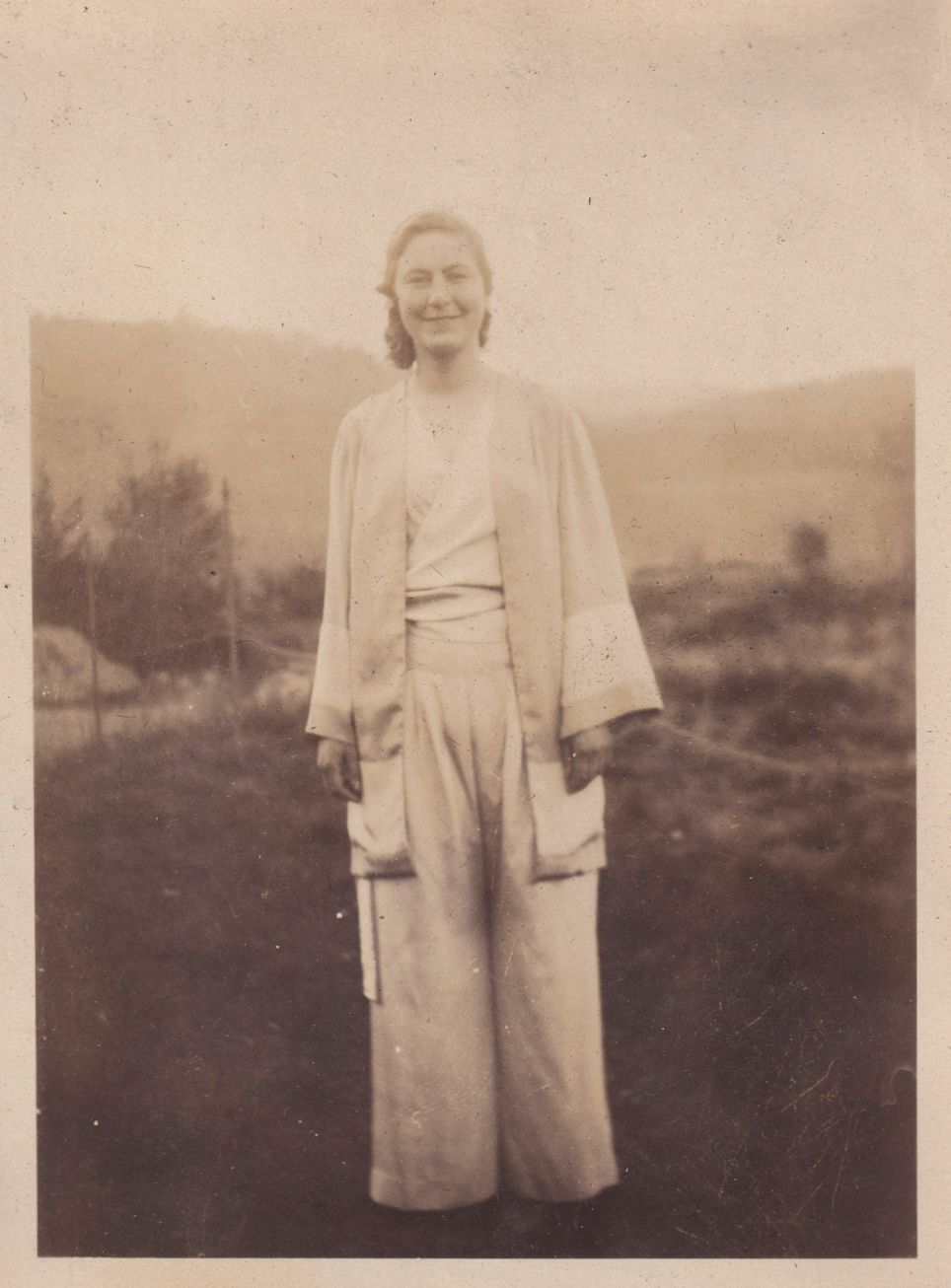 Black-and-White photograph of an unidentified woman, likely a tuberculosis patient, standing outside.