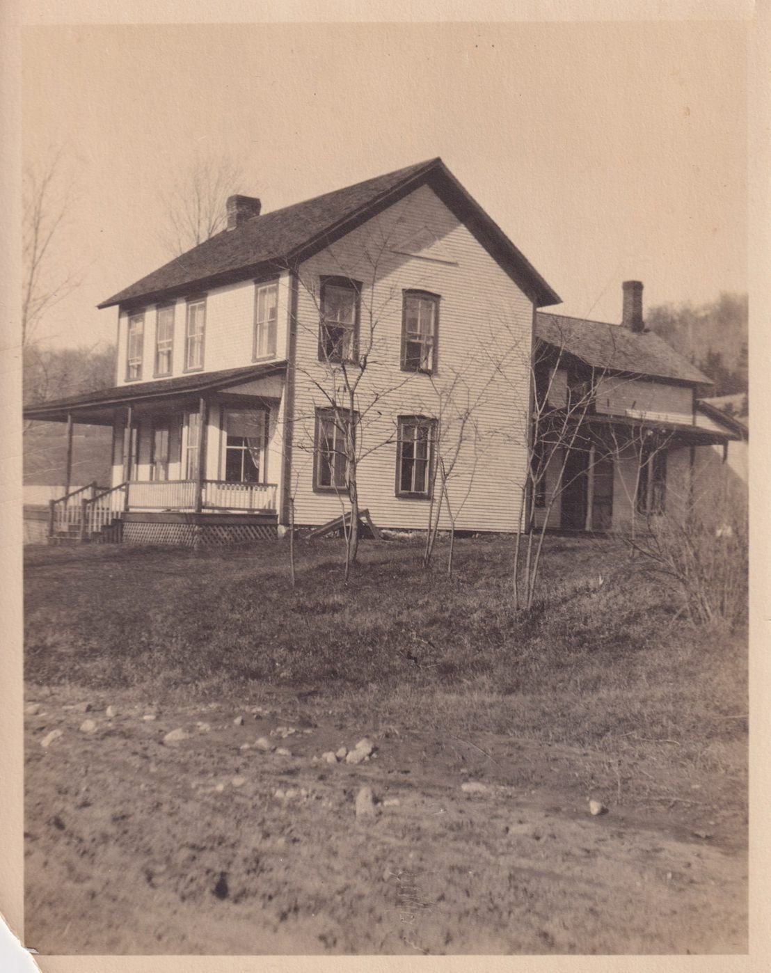 Black-and-White photograph of an unidentified house with a large front porch. The photograph was likely printed by Kollecker's Kodak and Gift Shop.