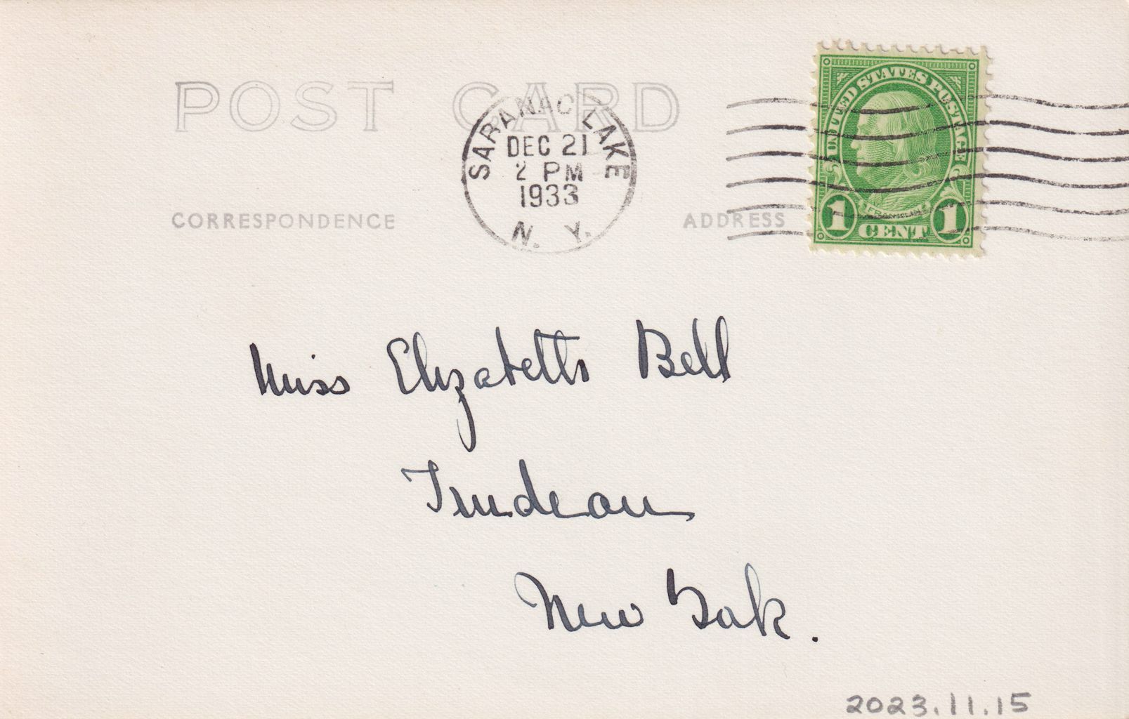 Trudeau family Christmas card, 1933.