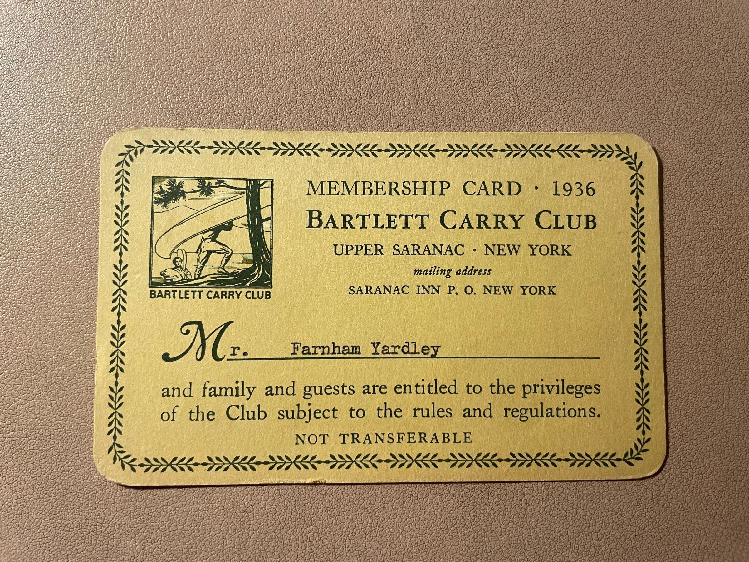 Membership card for the Bartlett Carry Club, 1936. Issued to Farnham Yardley.