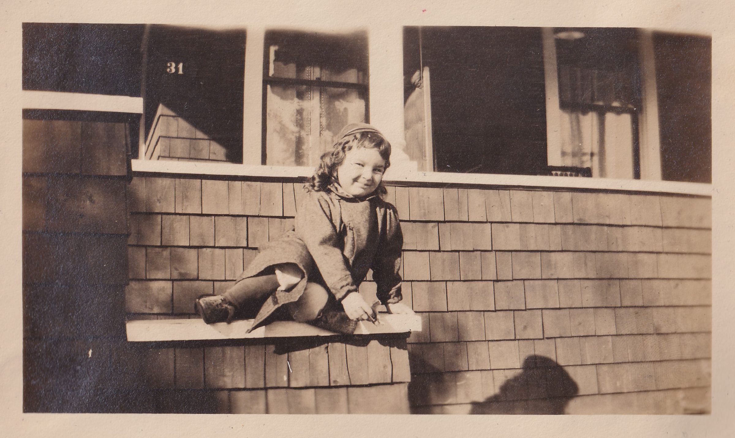 Photograph of a young John Dean Carrier seated on the edge of the front porch of 31 Franklin Avenue [83]. Note: this is the same photograph as 2009.2.12.33.
