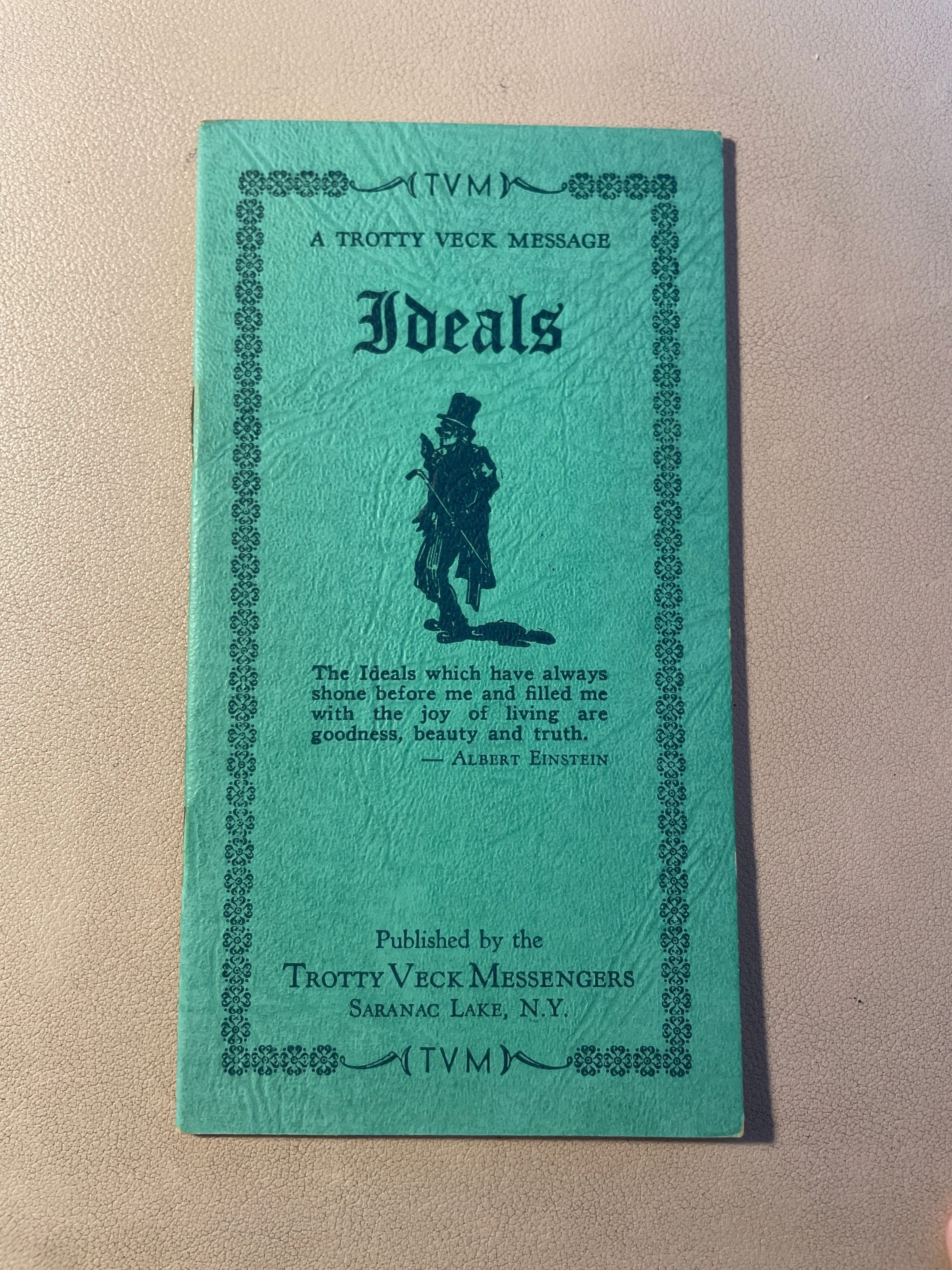 Trotty Veck Message: Ideals. Copyright 1939. Softcover, green cover, navy or black ink.