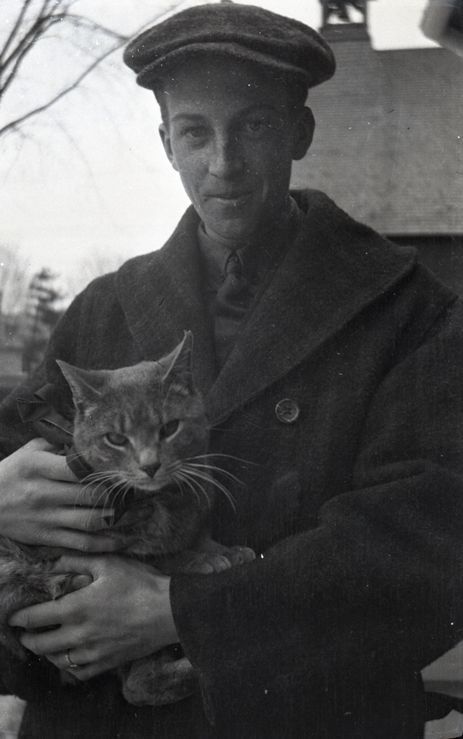 Negative of Henry Ives Baldwin standing on the front lawn of the Baldwin House holding a cat. Most likely taken by Mary Ives Baldwin. This item is not fully cataloged but has been uploaded so the image is publicly available; if you would like us to prioritize cataloging this item, please contact the HSL Collections team.