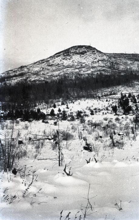 Negative of a mountain and nearby scenery covered in snow. Most likely taken by Mary Ives Baldwin. This item is not fully cataloged but has been uploaded so the image is publicly available; if you would like us to prioritize cataloging this item, please contact the HSL Collections team.