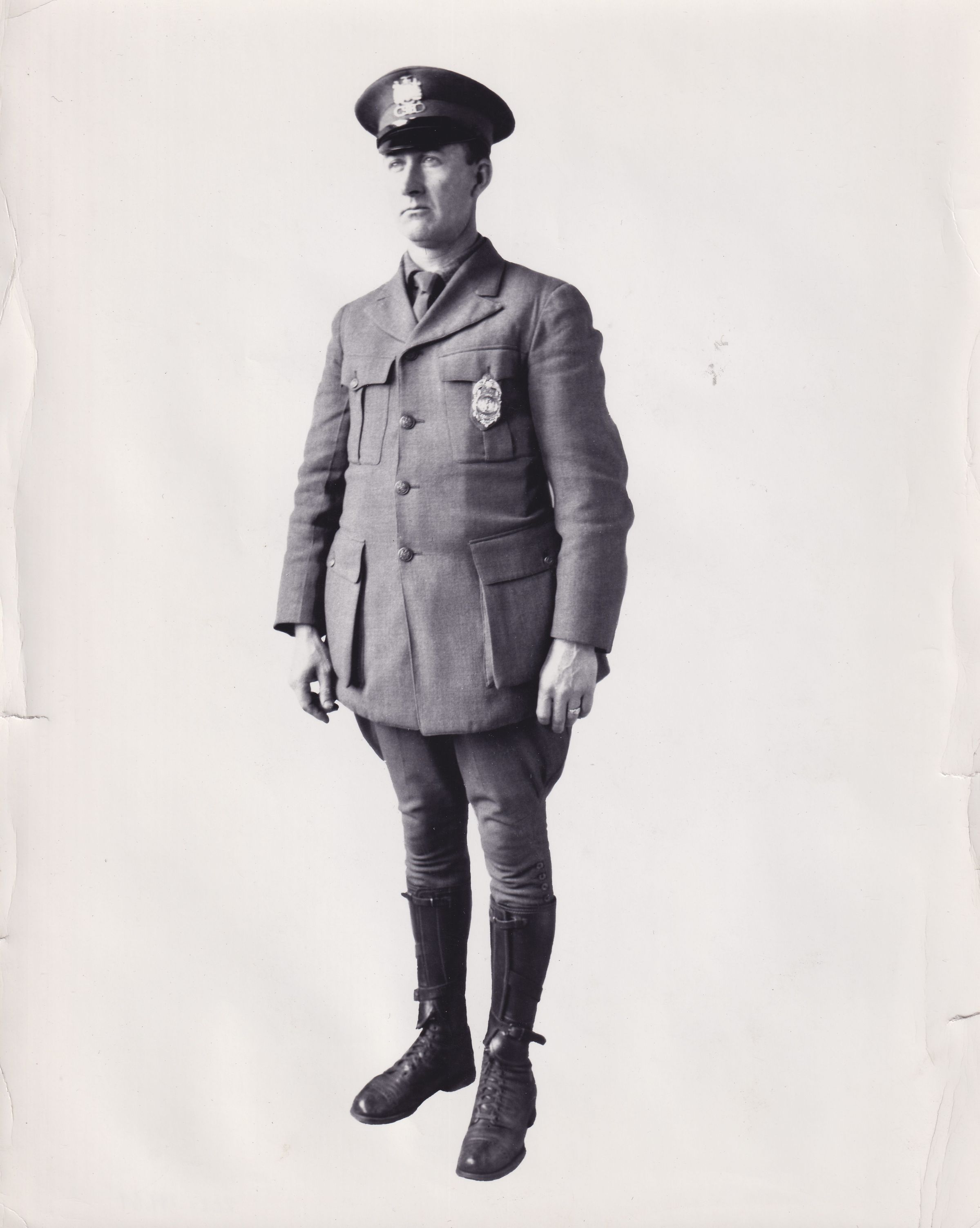 Black-and-White photograph of a man in uniform, possibly Carl Prue. The background of the photograph is completely white.