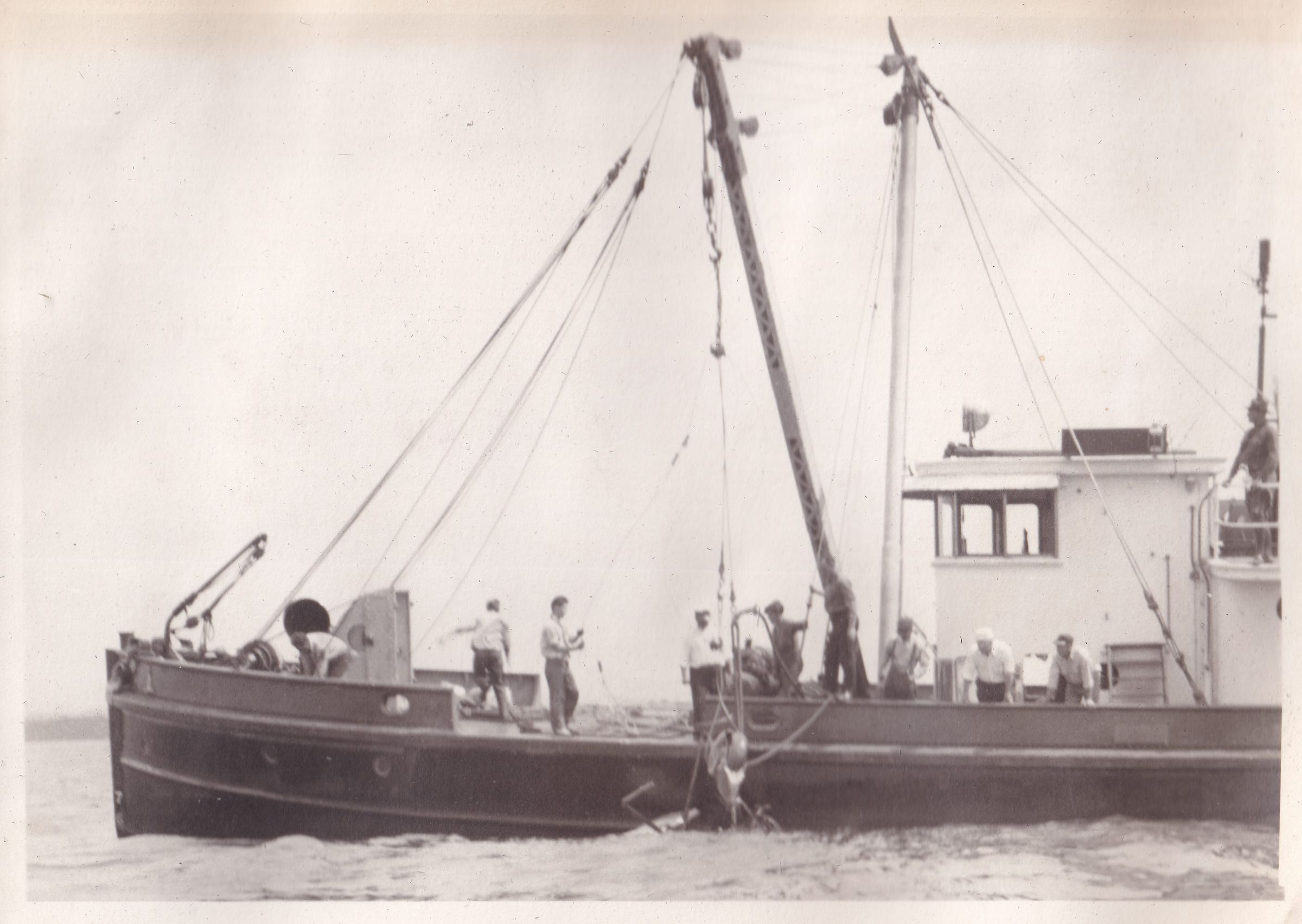 U. S. Gov't. Lighthouse Tug raising wrecked plane after being located by Game Protectors. July 30, 1936.