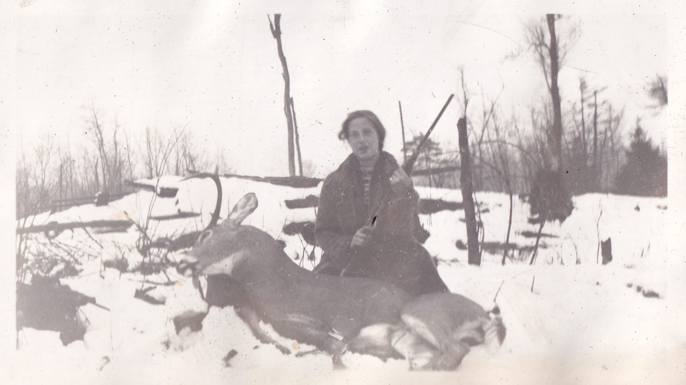 Miss Agnes Osborne, niece of Com. Osborne. Deer killed by first shot, 143 yds, Fall of 1936.Entry/Object ID