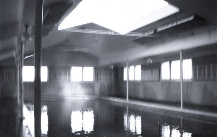 Negative of a large open room with a pool in it. There is a large skylight on the ceiling. Most likely taken by Mary Ives Baldwin. This item is not fully cataloged but has been uploaded so the image is publicly available; if you would like us to prioritize cataloging this item, please contact the HSL Collections team.