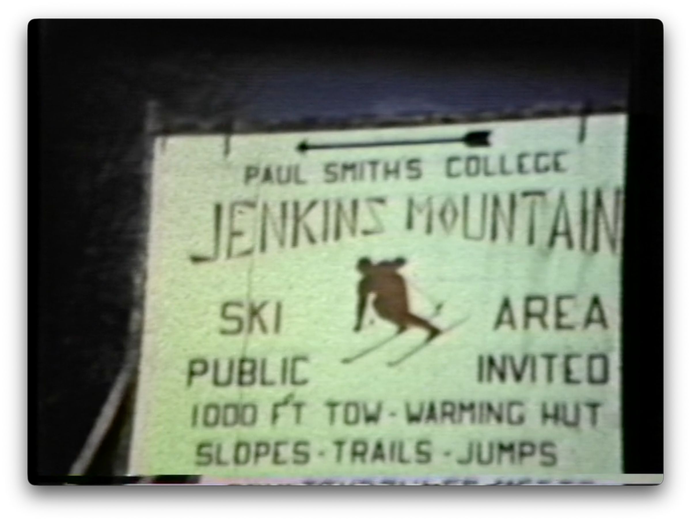 Color VHS footage [likely converted from 8mm film] showing skiing, ski jumping, and ski races at Donnelly's Hill, Paul Smith's College at Jenkins Mountain, and Mount Pisgah. Includes footage of the 1960 Winter Carnival Ice Palace and a parade from an unidentified year. Noah John Rondeau can be seen interacting with Carnival royalty. Includes footage of a parade and skating races, possibly in Lake Placid. Tape ends with footage at Lamberton Conservatory in Rochester. Voiceovers on tape say, "The following are Jenkins Mountain ski races, 1951, Winter Carnival 1951, Lake Placid Saranac Lake skating races with Don Fina," and, "Next are the golden ski races, 1952."Photograph Details