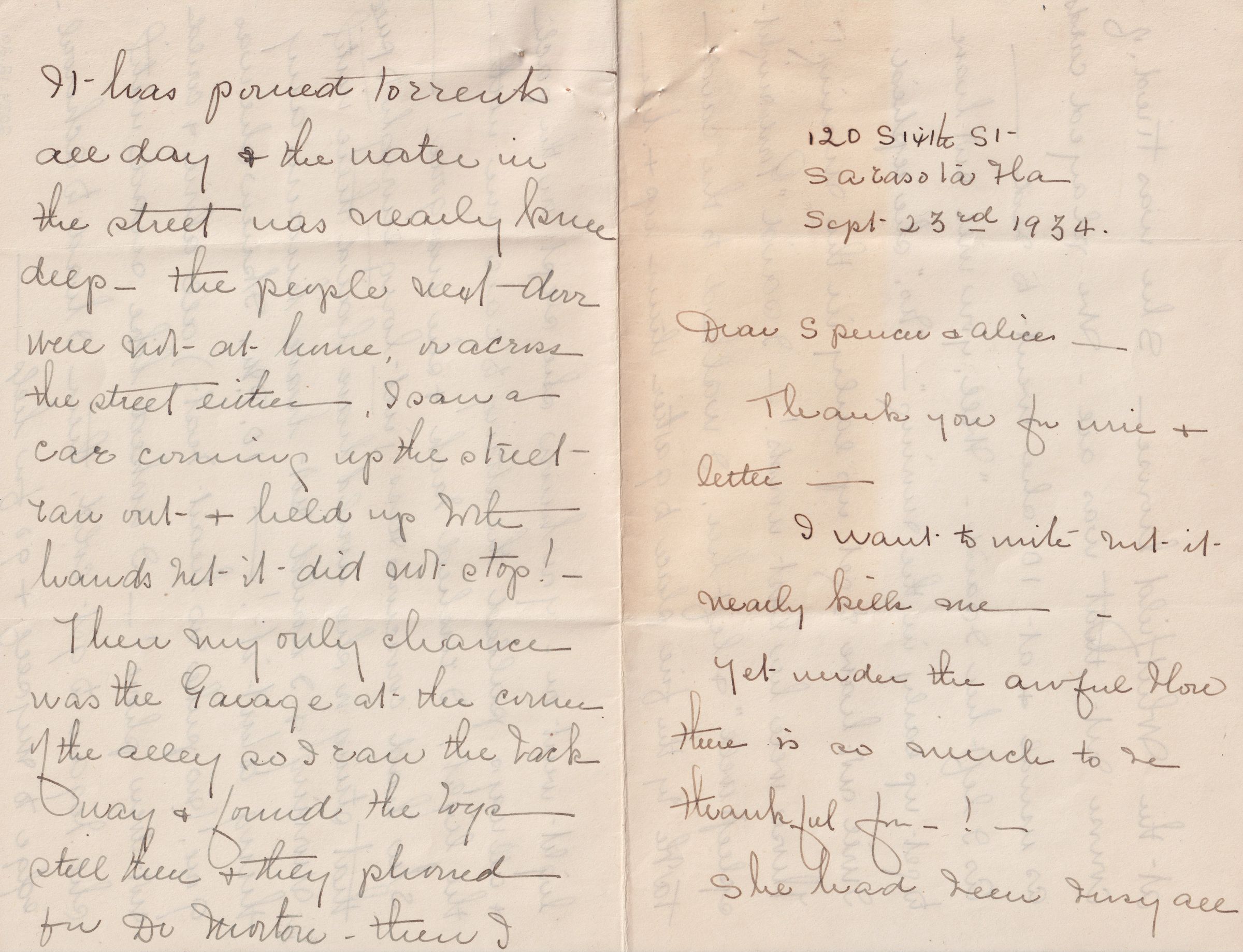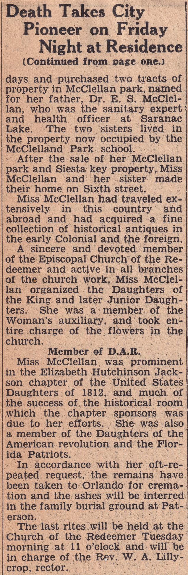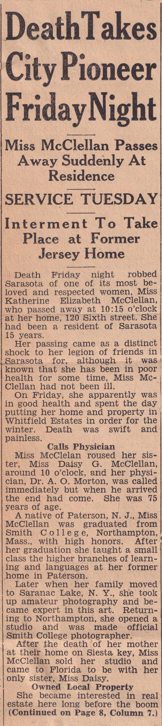 Letter to Spencer and Alice Jewell with clipping about Katherine McClellan's death from D.G. McClellan (Katherine's sister), 1934.