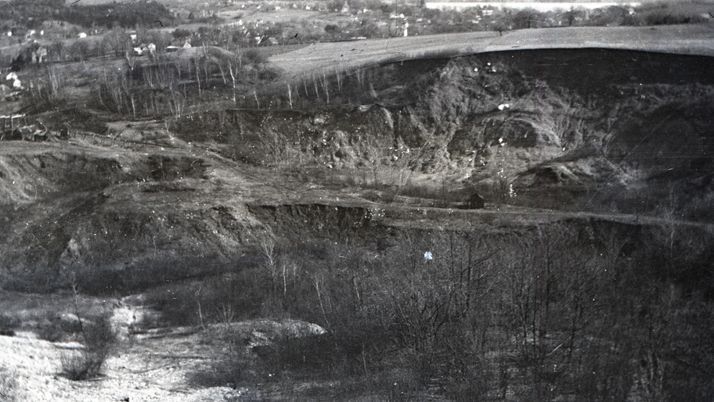 Negative of a landscape where mining activity or a landslide might have taken place at some point. Most likely taken by Mary Ives Baldwin. This item is not fully cataloged but has been uploaded so the image is publicly available; if you would like us to prioritize cataloging this item, please contact the HSL Collections team.