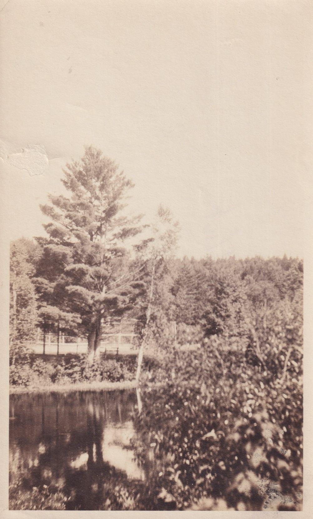 Black-and-White photograph of a tennis court at Bartlett Carry Club seen from a distance. Handwritten caption on reverse reads, "Bartlett Carry Club, Tennis Court. 1924."