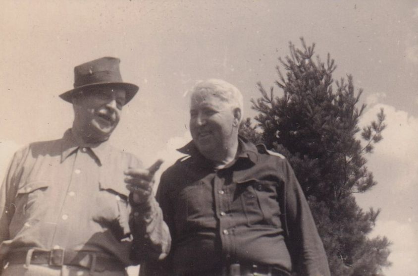 Black-and-White photograph of Ray Burmaster standing with an unidentified man. Printed from a contact sheet.