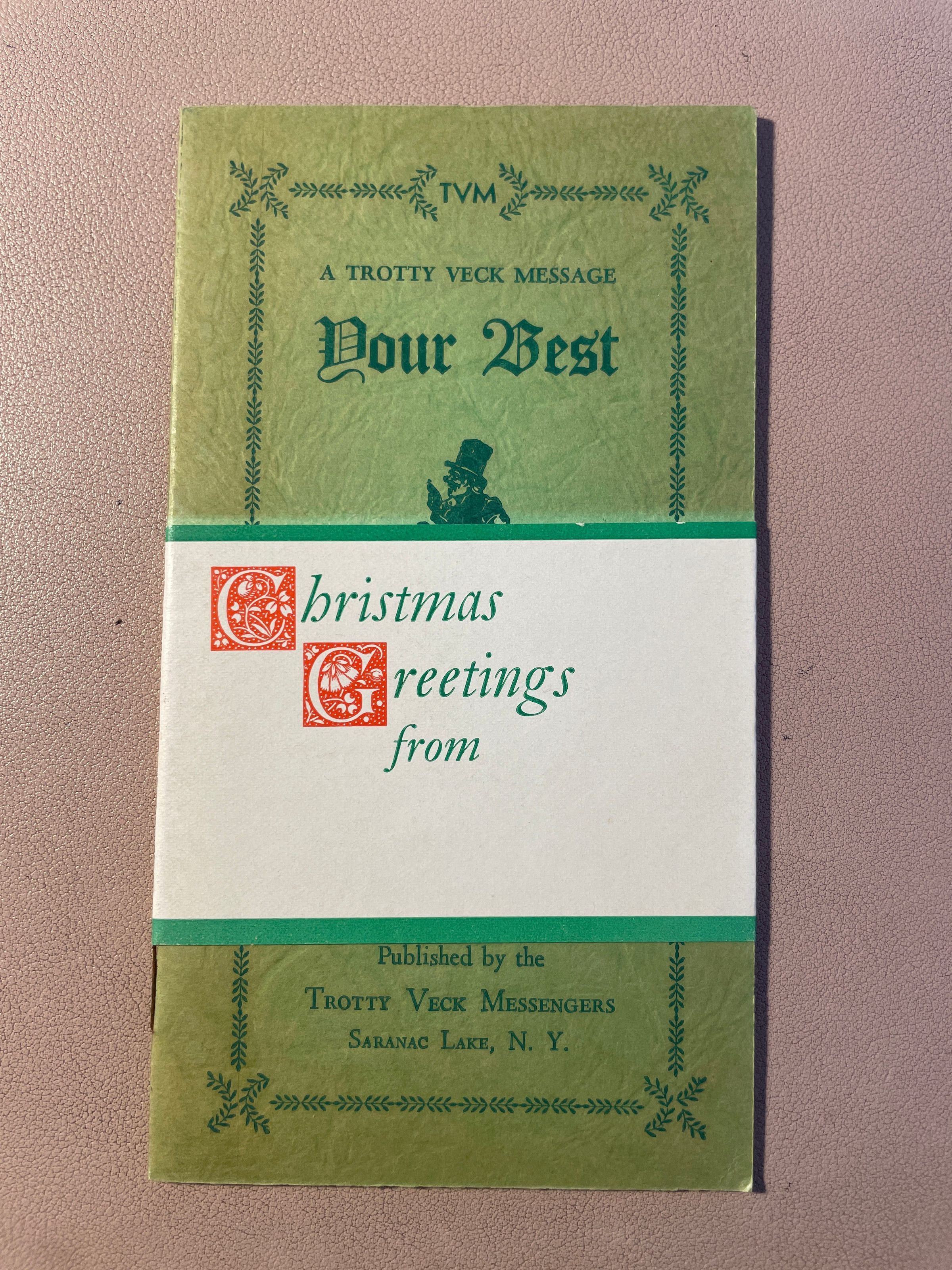 Trotty Veck Message: Your Best. Copyright 1946. Has a paper wrapper over cover reading, "Christmas Greetings from..."