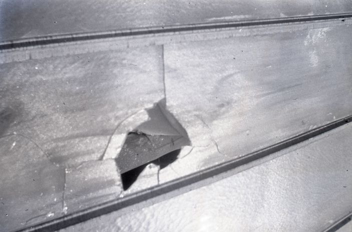 Negative of a hole in the wall of an unidentified structure. Most likely taken by Mary Ives Baldwin. This item is not fully cataloged but has been uploaded so the image is publicly available; if you would like us to prioritize cataloging this item, please contact the HSL Collections team.