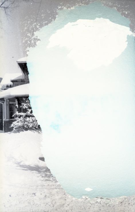 Negative of the Baldwin House, partially obscured by a piece of scrapbook paper stuck to the negative. The roof is covered in snow. Most likely taken by Mary Ives Baldwin. This item is not fully cataloged but has been uploaded so the image is publicly available; if you would like us to prioritize cataloging this item, please contact the HSL Collections team.