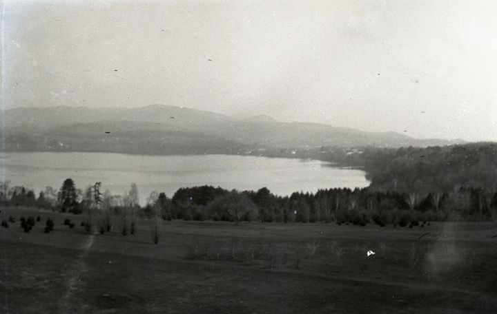 Negative of a lake with a wooded shoreline. Most likely taken by Mary Ives Baldwin. This item is not fully cataloged but has been uploaded so the image is publicly available; if you would like us to prioritize cataloging this item, please contact the HSL Collections team.