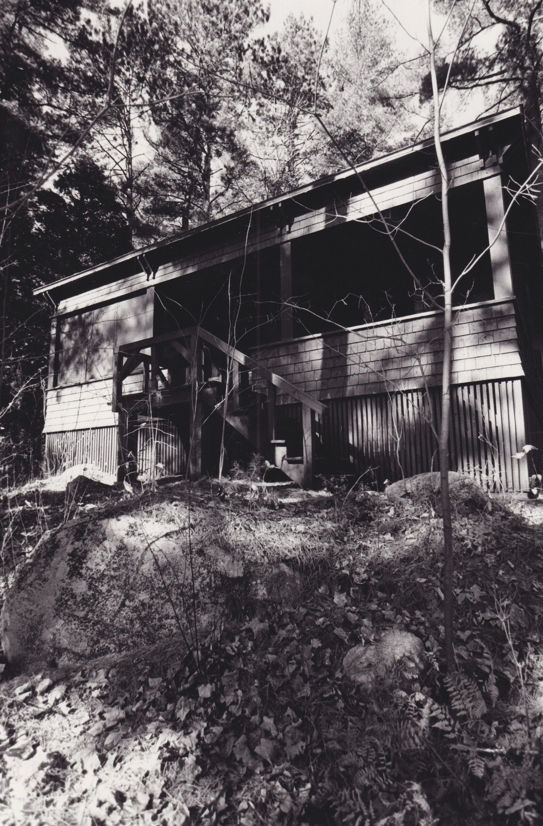 Black-and-White photograph of a small unidentified cottage at Bartlett Carry Club.