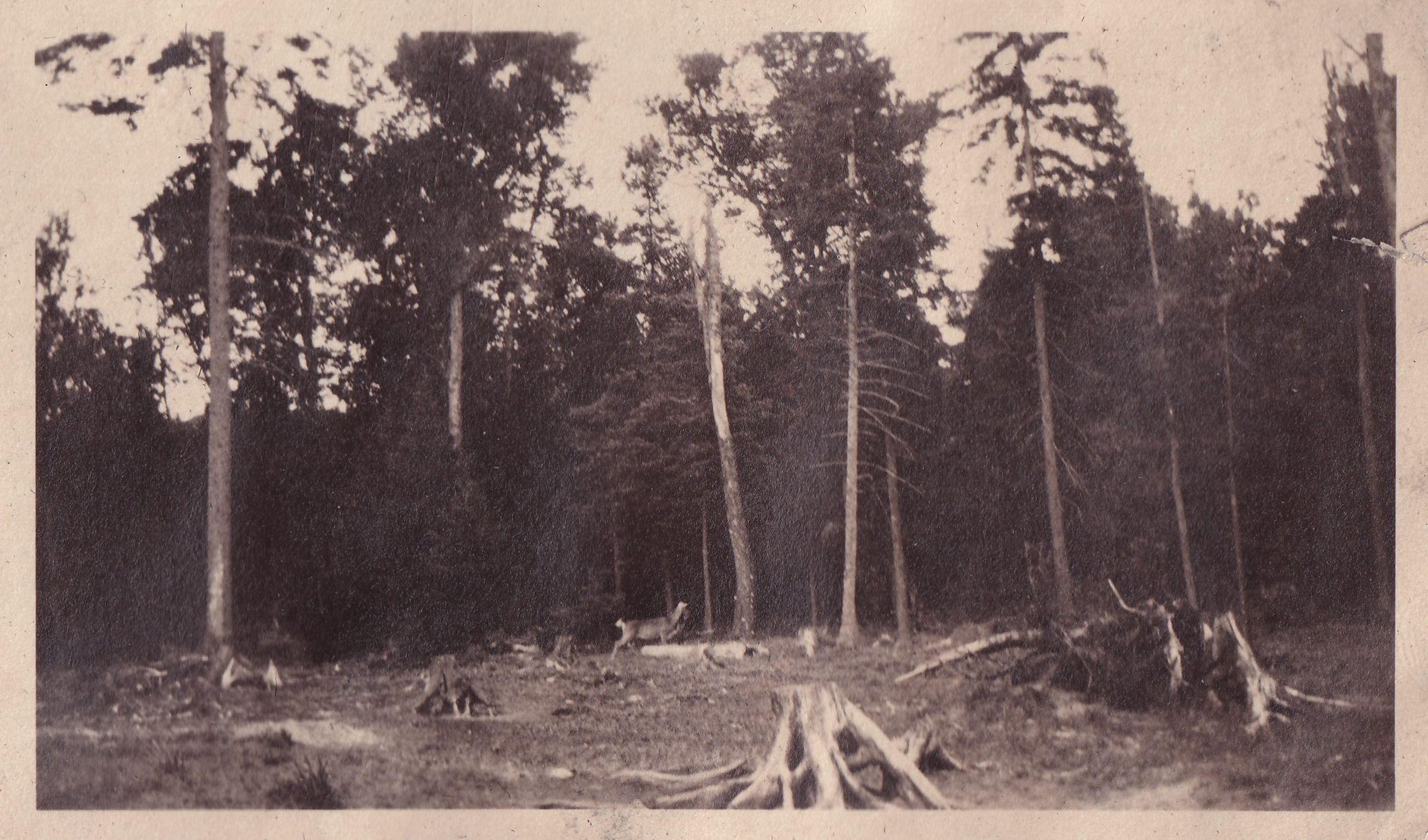 Black-and-White photograph of a deer in the distance. Handwritten caption on page above reads, "Deer No 2 Camp 1925."