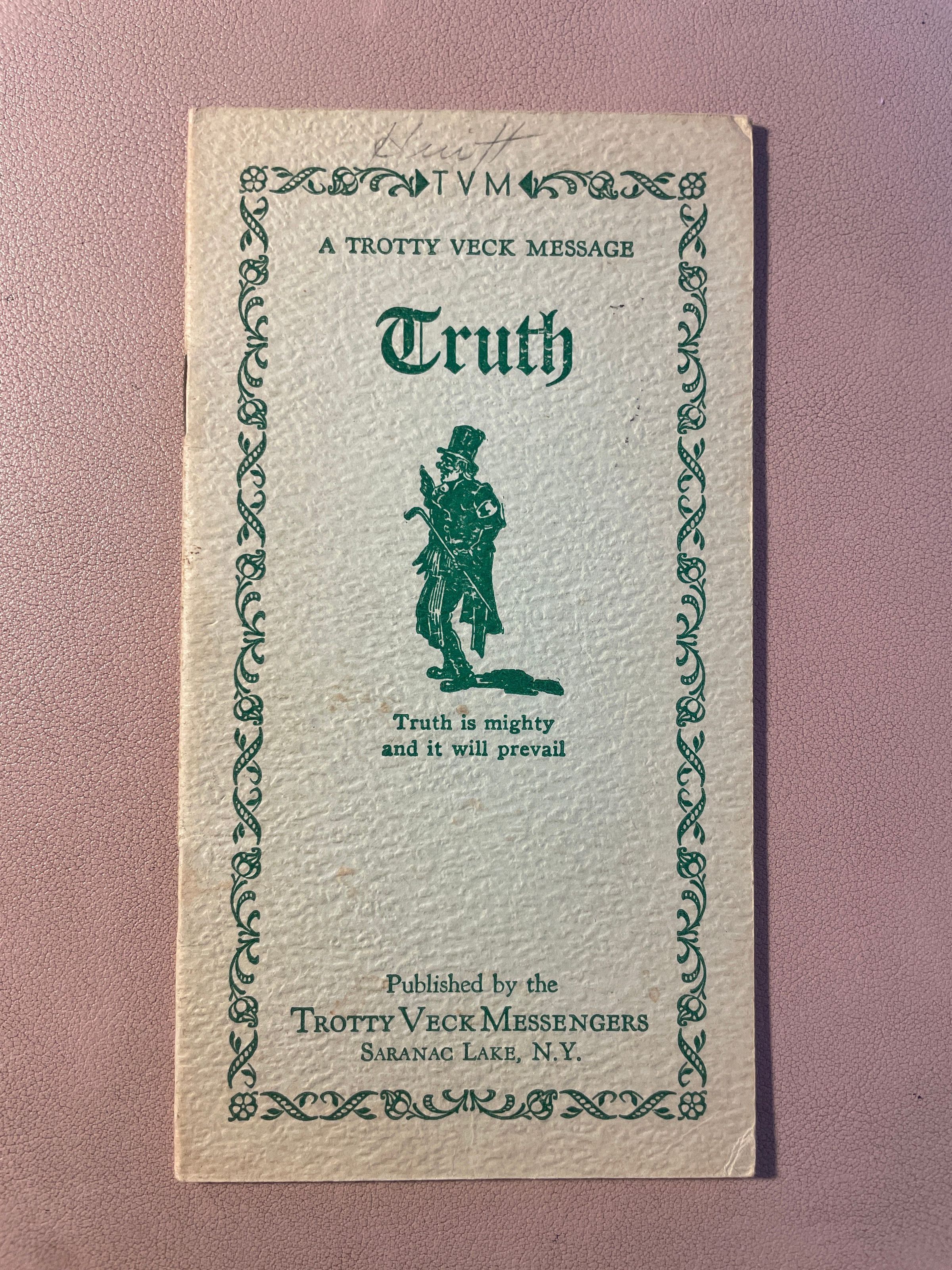 Trotty Veck Message: Truth. Copyright 1940. Softcover, light green cover, green ink.