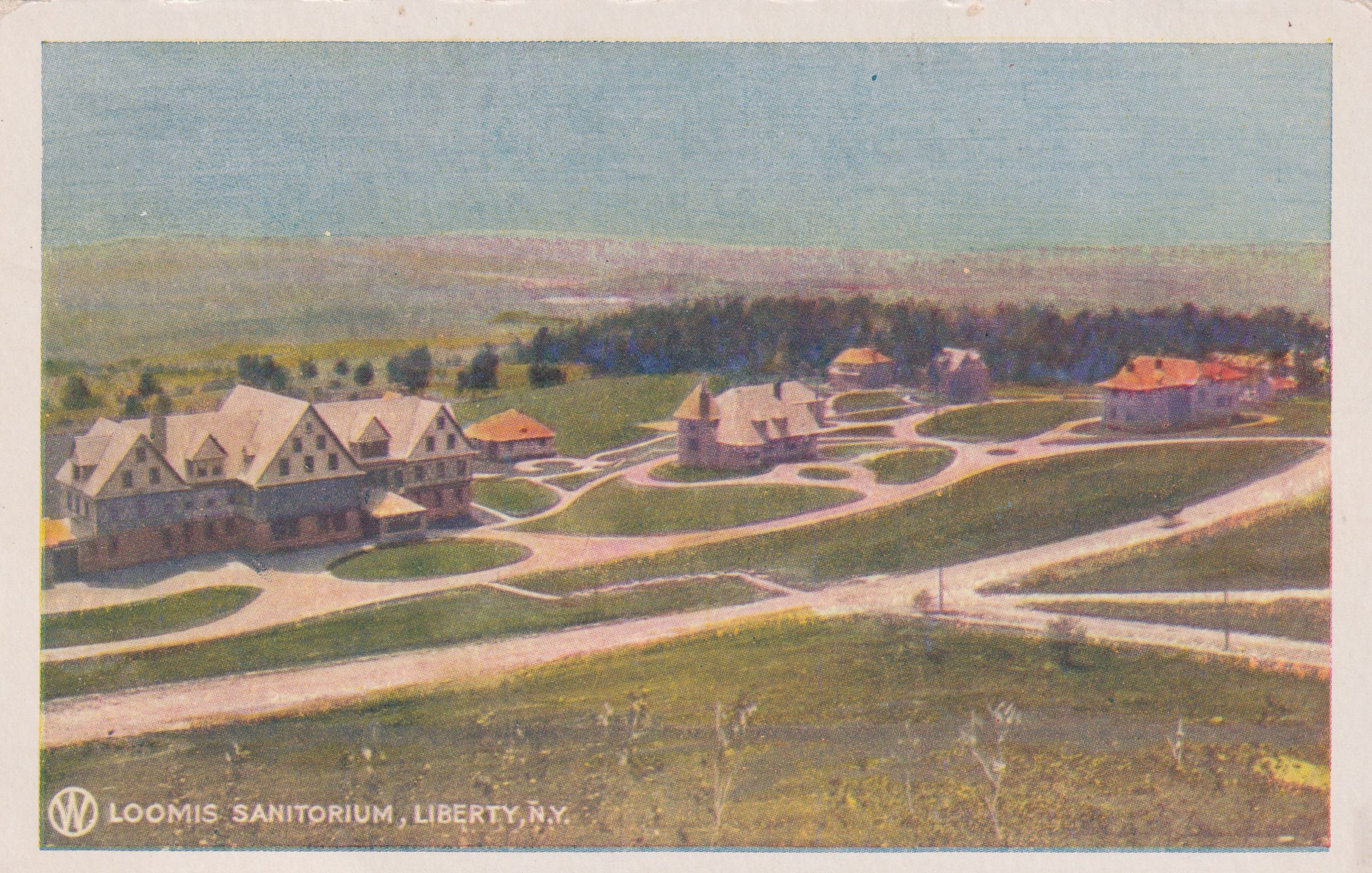 Color postcard showing a campus full of buildings. Printed caption on the front reads, "Loomis Sanitorium, Liberty, N.Y." Unused, undivided back, white border. Printed by the N. Y.. O. & W. RY.Collection
