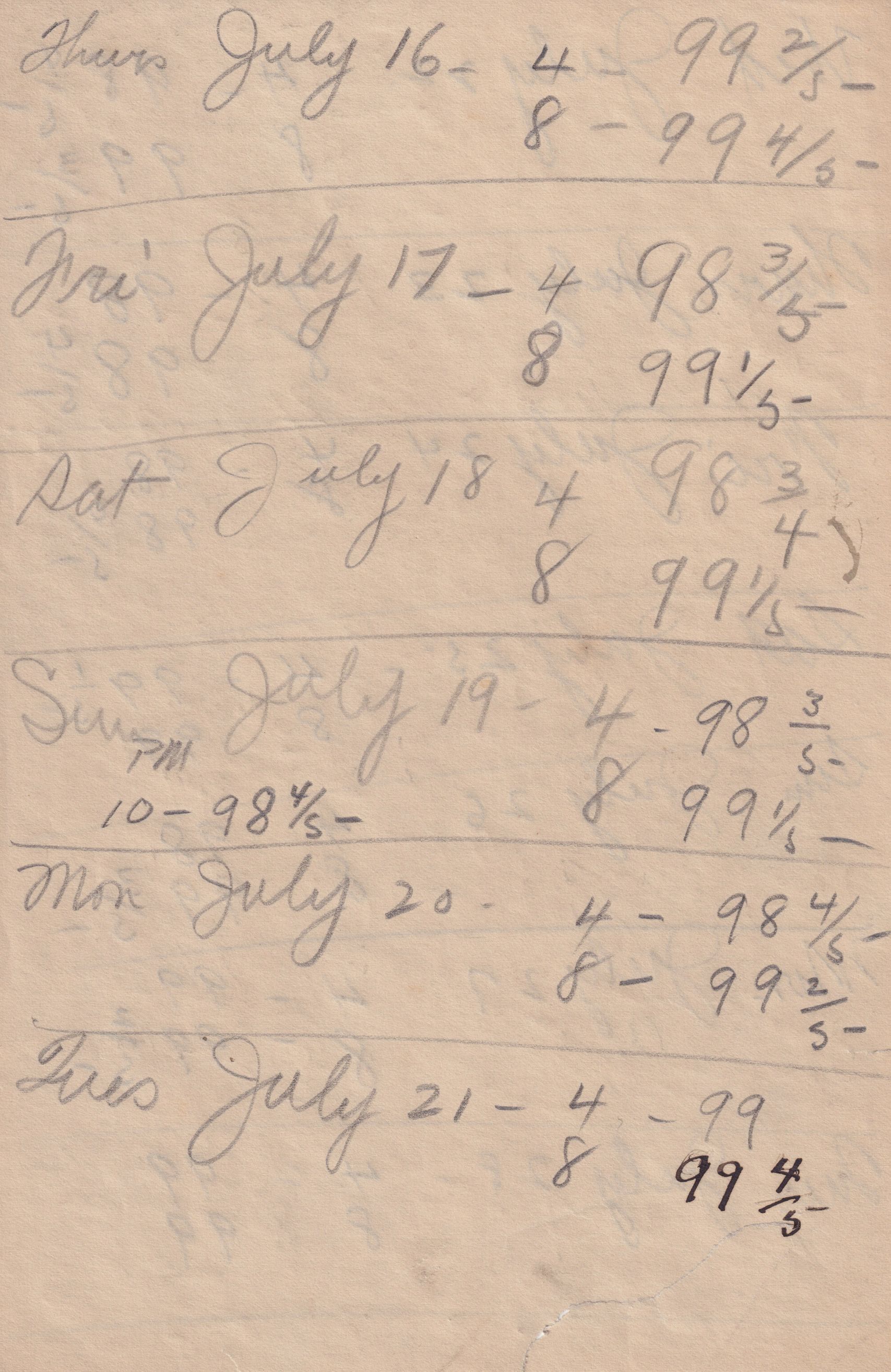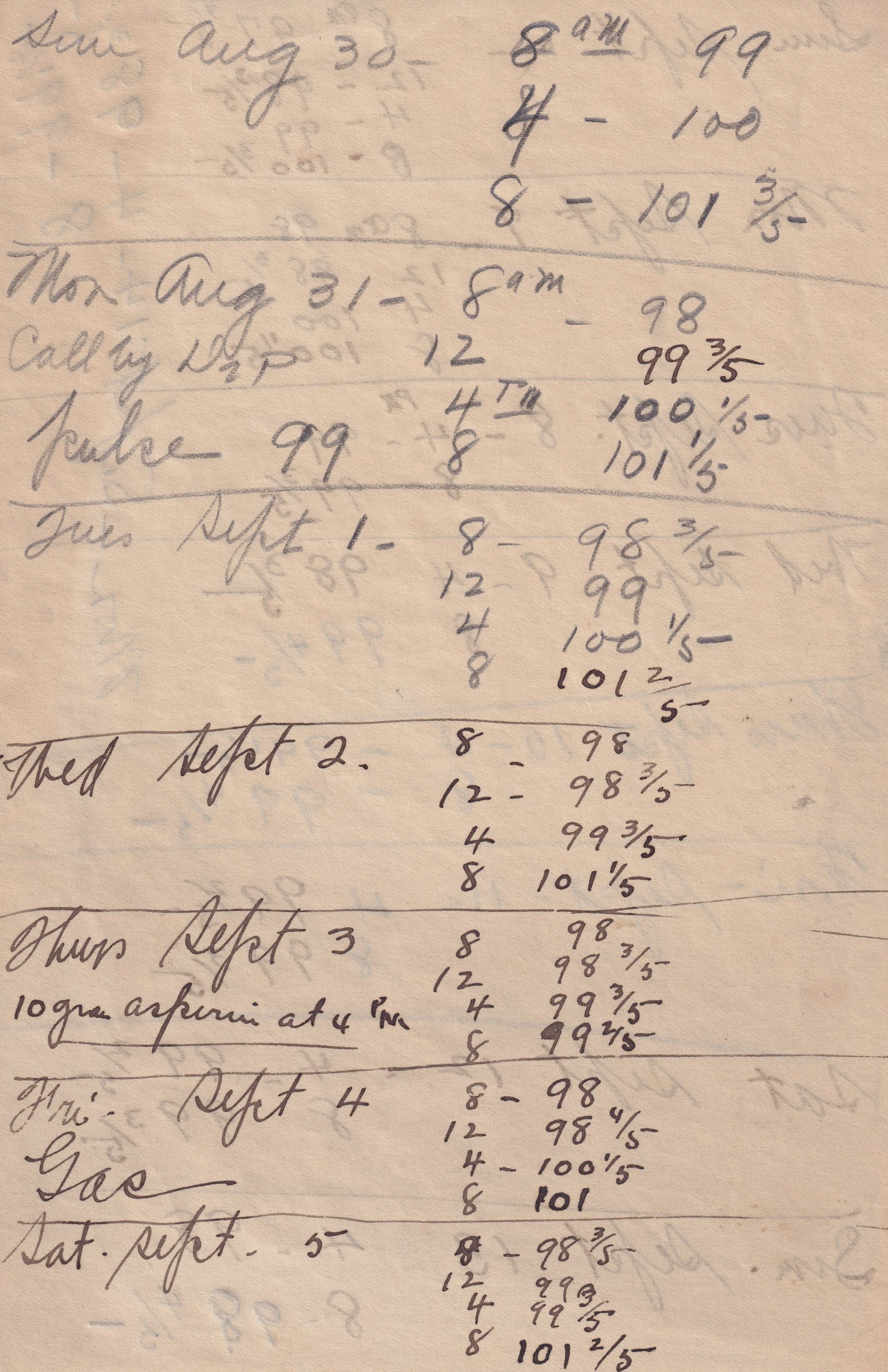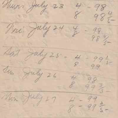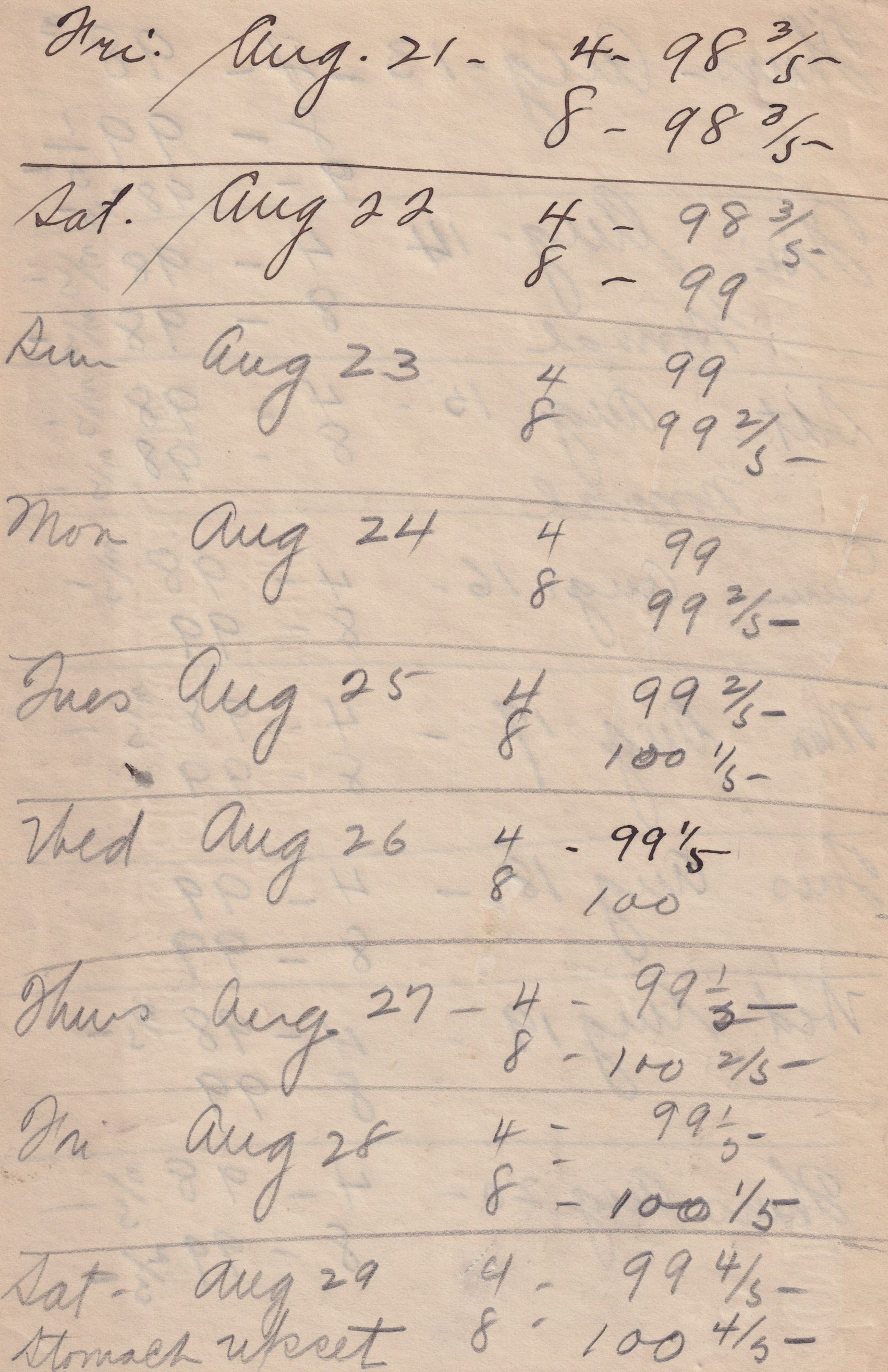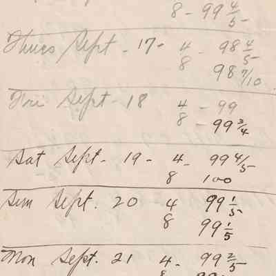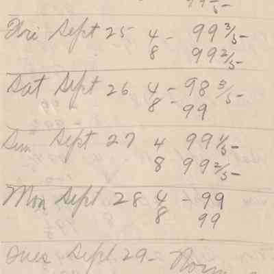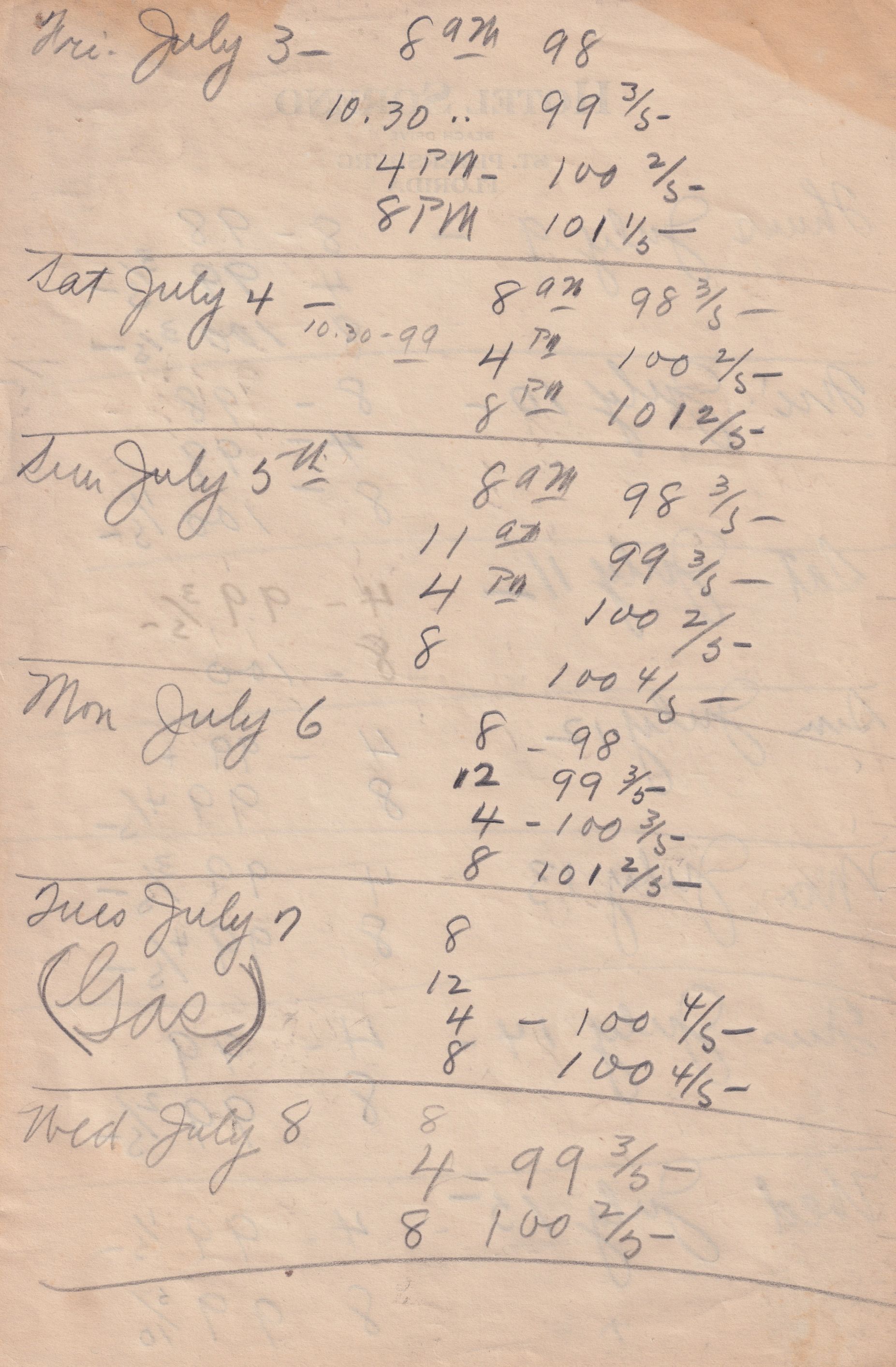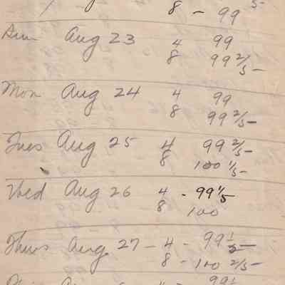 Twenty-three pages of paper with Christy Mathewson's temperature throughout the day recorded on them. Most of the papers are stationery from Hotel Soreno in St. Petersburg, Florida.