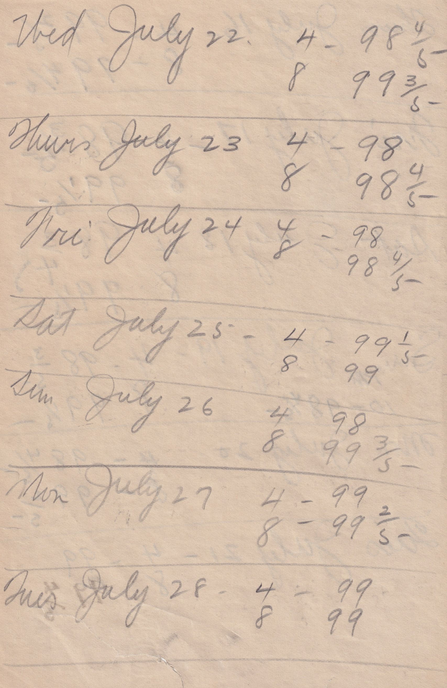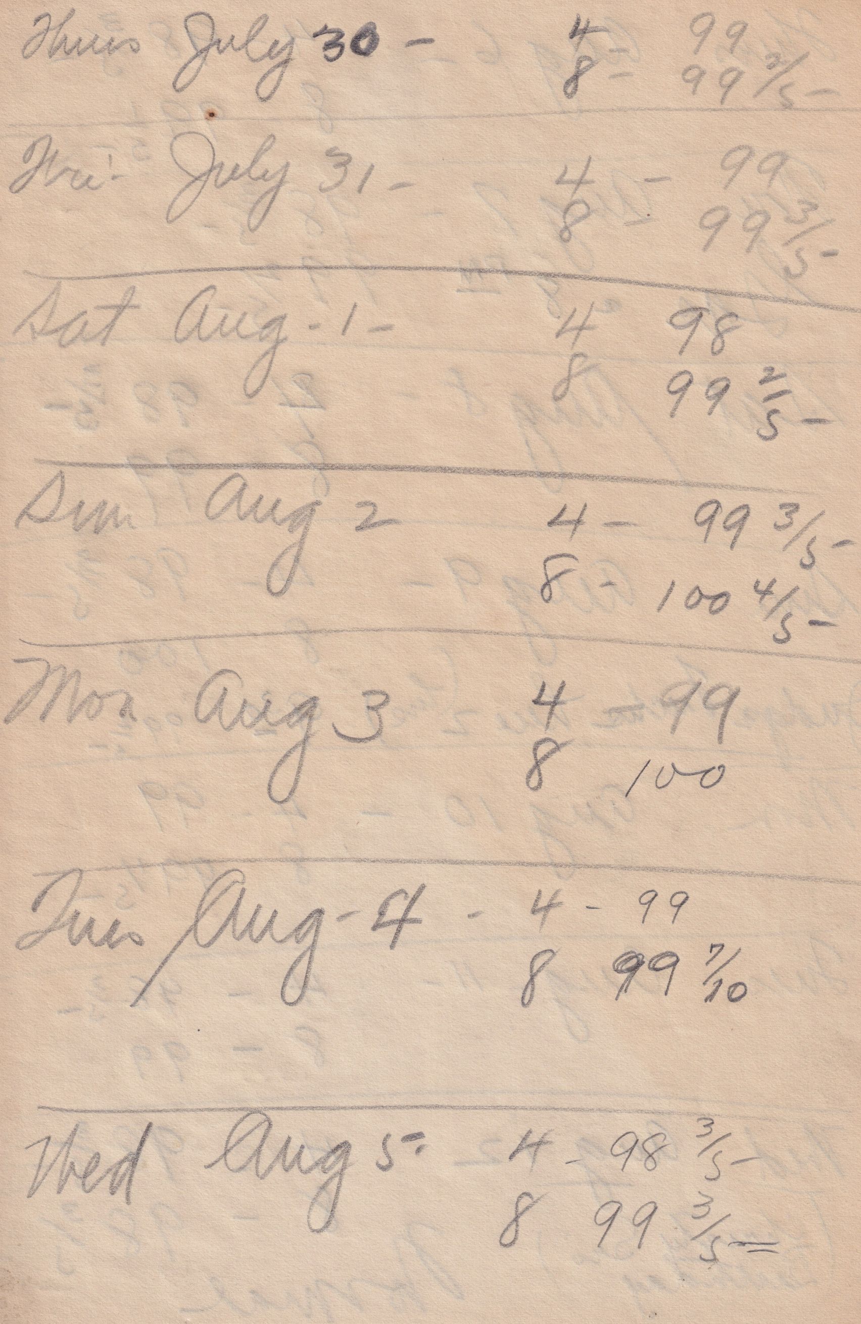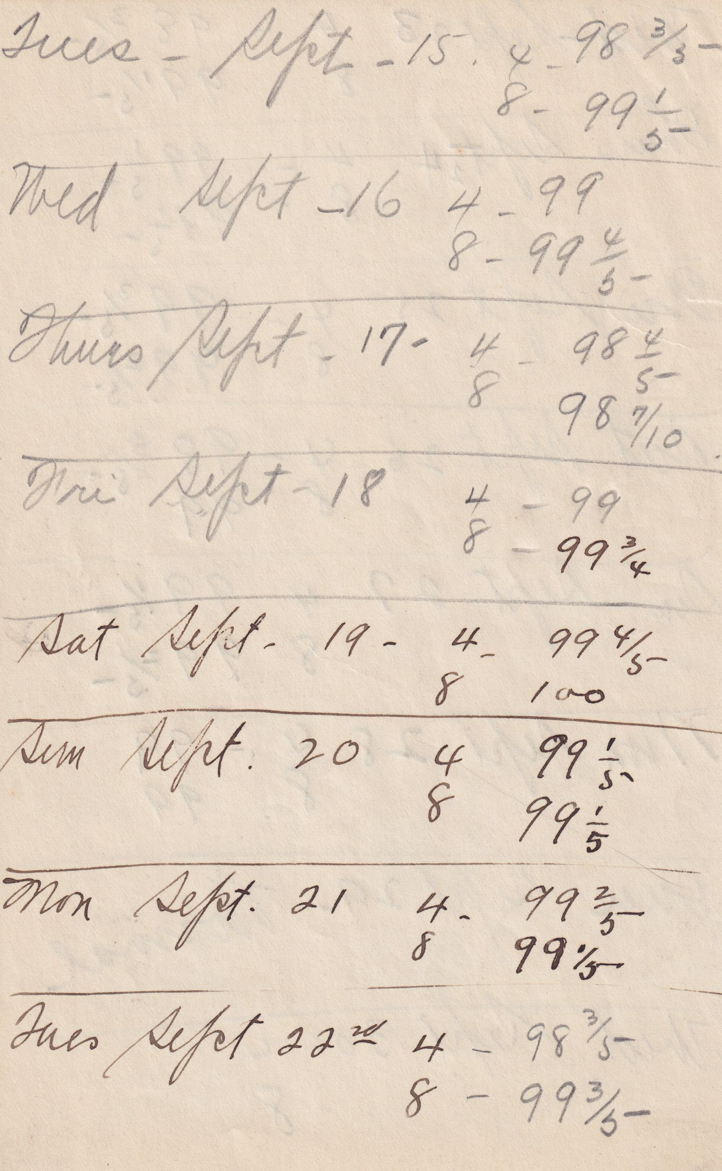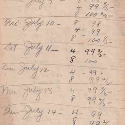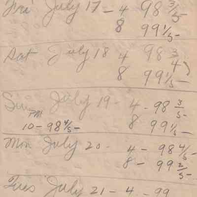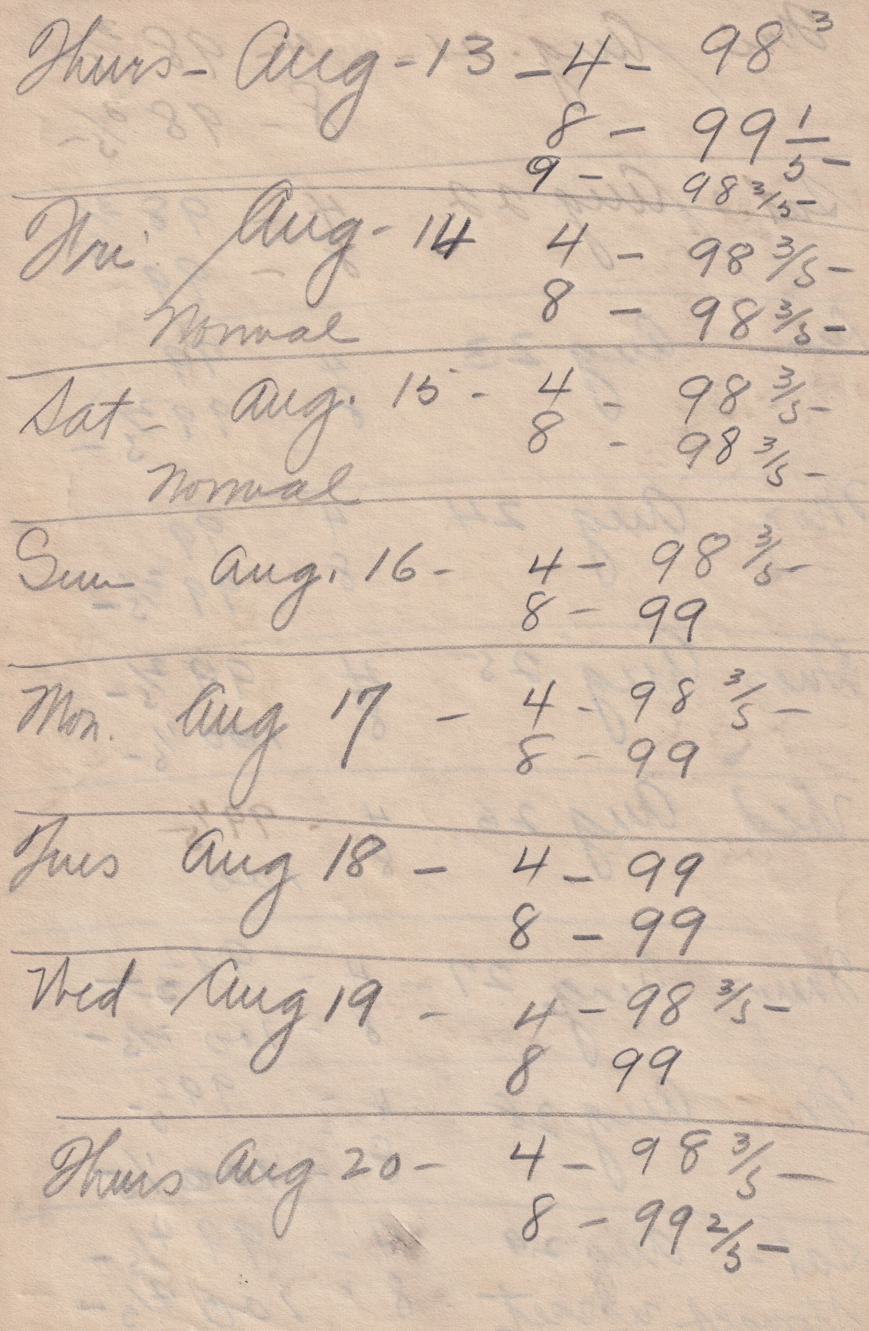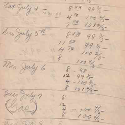 Twenty-three pages of paper with Christy Mathewson's temperature throughout the day recorded on them. Most of the papers are stationery from Hotel Soreno in St. Petersburg, Florida.
