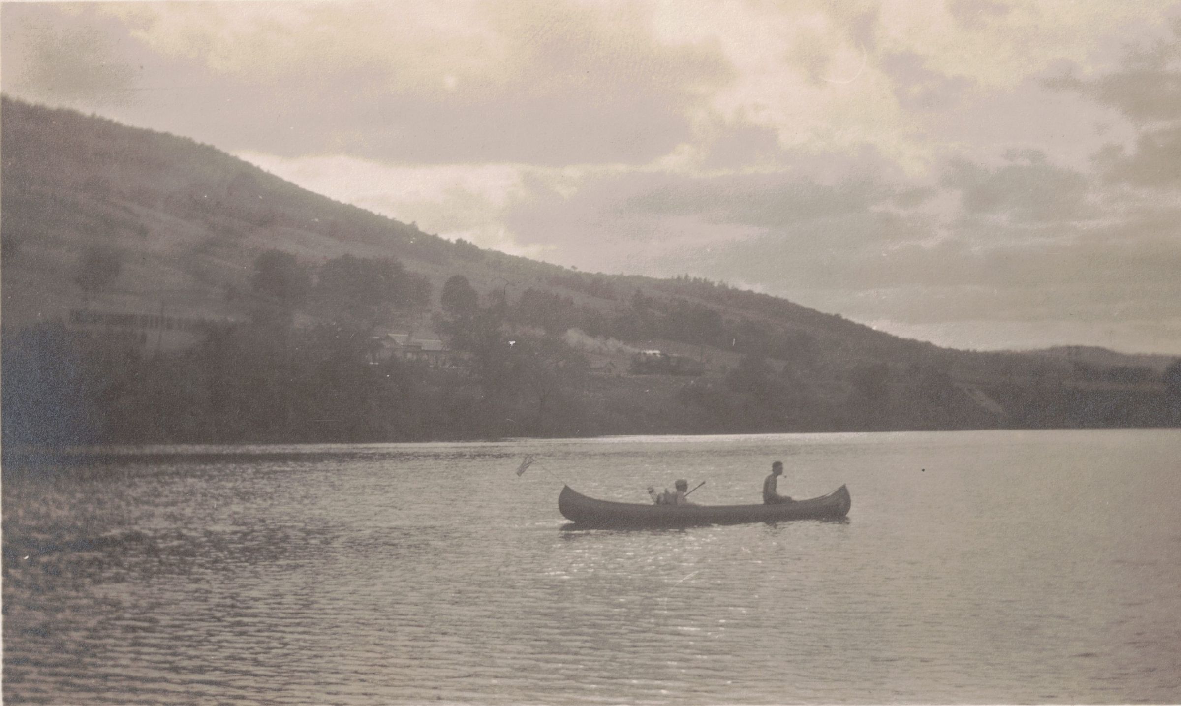 Photograph of two unidentified people in a canoe on an unidentified body of water.Collection