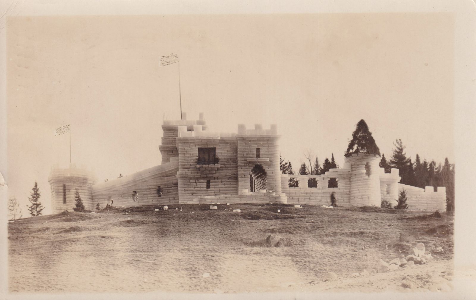 Black-and-White photograph postcard of the 1913 Ice Palace. No photographer's mark. Used, divided back, white border, postmarked Saranac Lake, March 4, 1913.