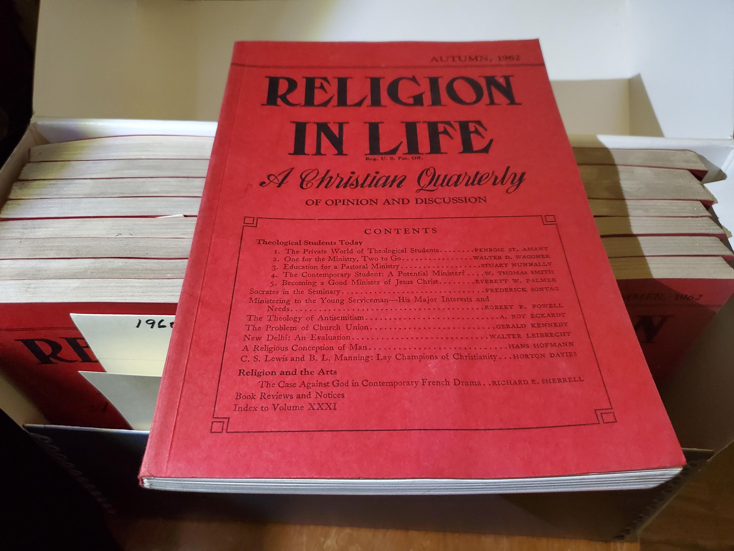 Bound magazines published 1960-1963. The Religion in Life magazine published by the Abingdon Press, New York.Collection