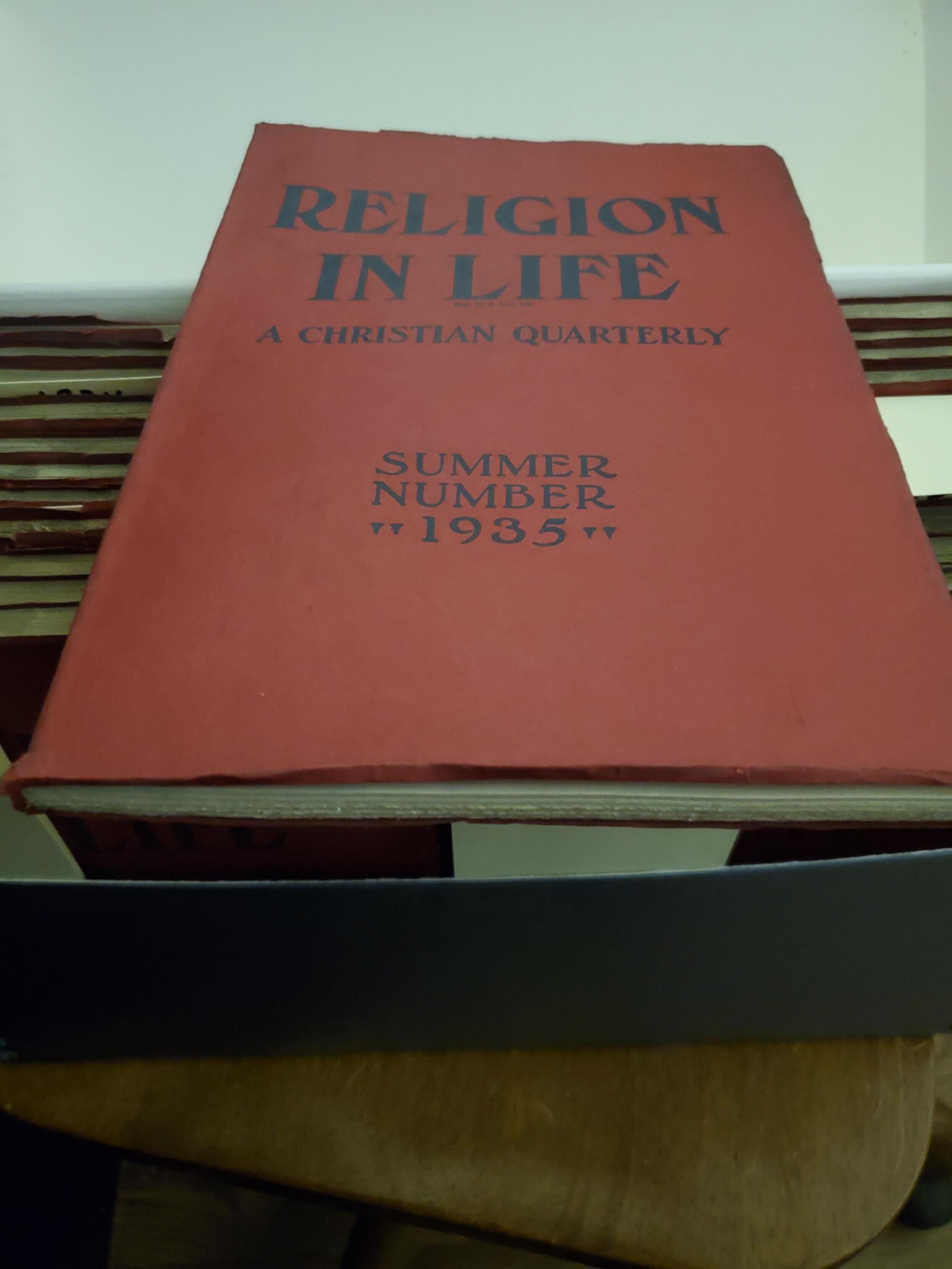 Bound magazines published 1932-1937. The Religion in Life magazine published by the Abingdon Press, New York.Collection