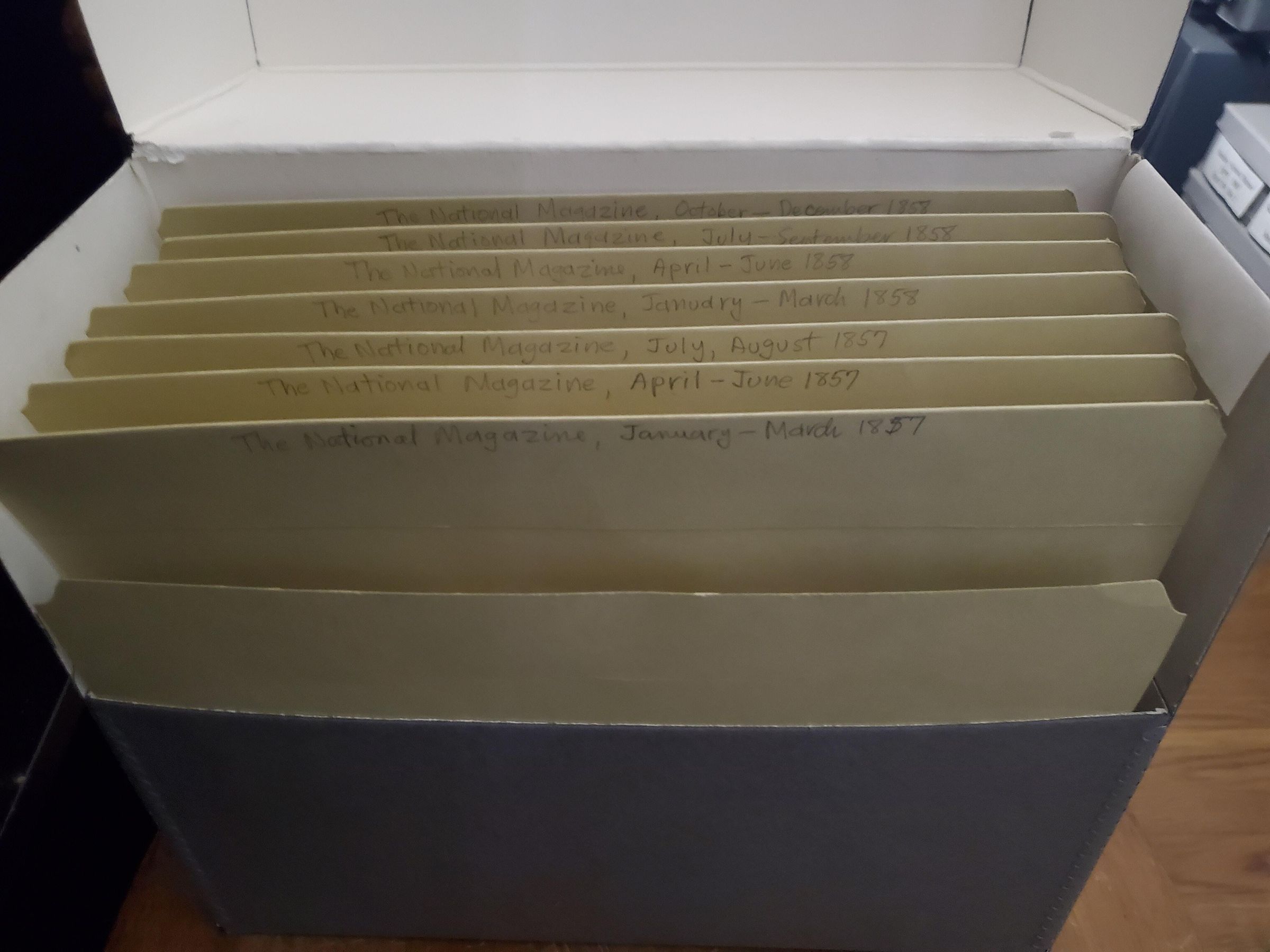 Bound magazines published 1857-1858. The National Magazine published by Carlton & Porter of New York. Magazine dedicated to discussion of literature, art and religion.Collection
