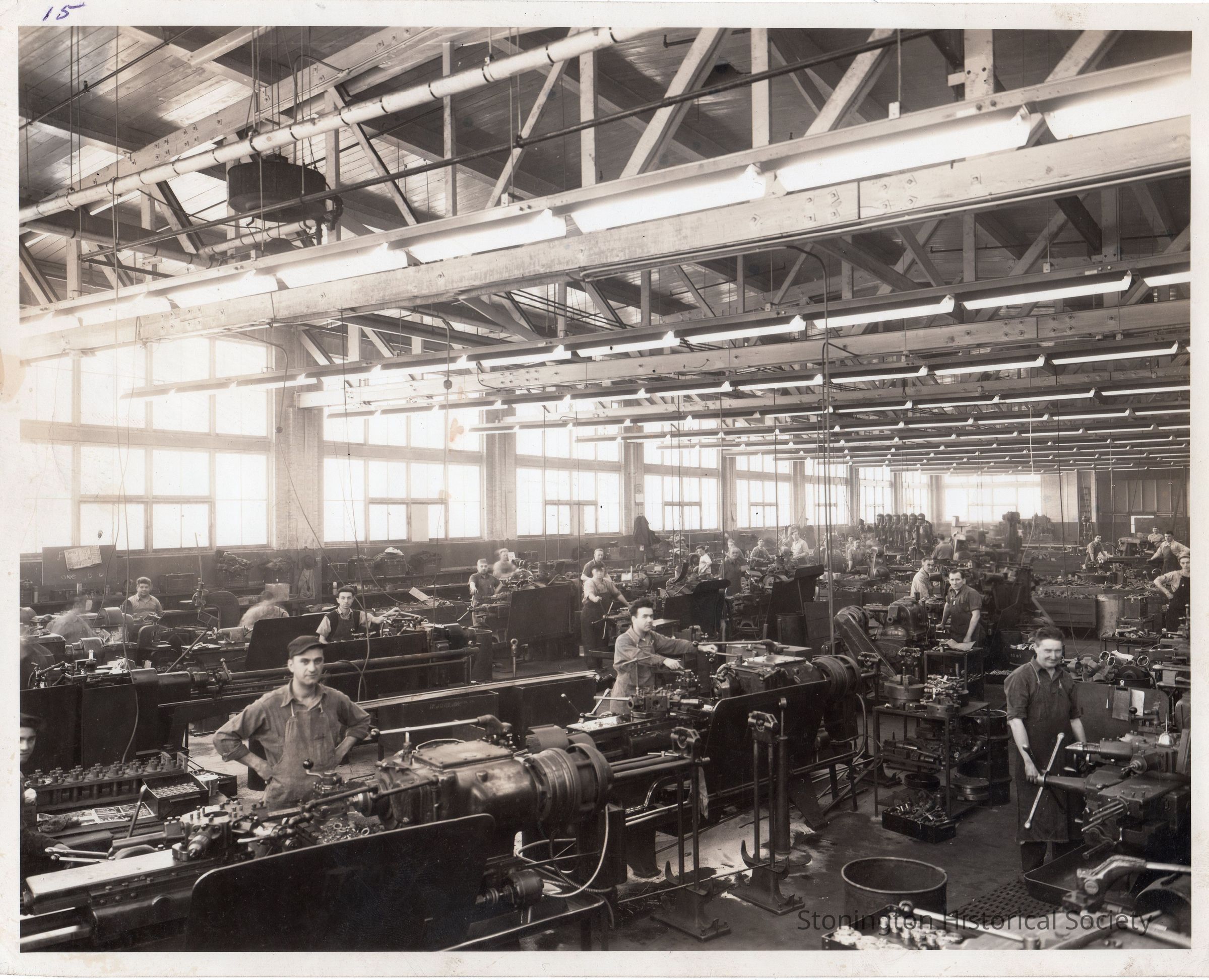Collection of photographs of the Atwood Machine Company during the 1940s, collected and assembled into an album (binder in hard black plastic case) by Norbert Souza, a former Monsanto employee who saved the photographs when the Monsanto plant closed in the 1980s. Includes news articles on Norbert Souza and list of "Products and Customers in World War II". Photographs by Frank J. Raymond of Stonington and Ed Burdick of Westerly.