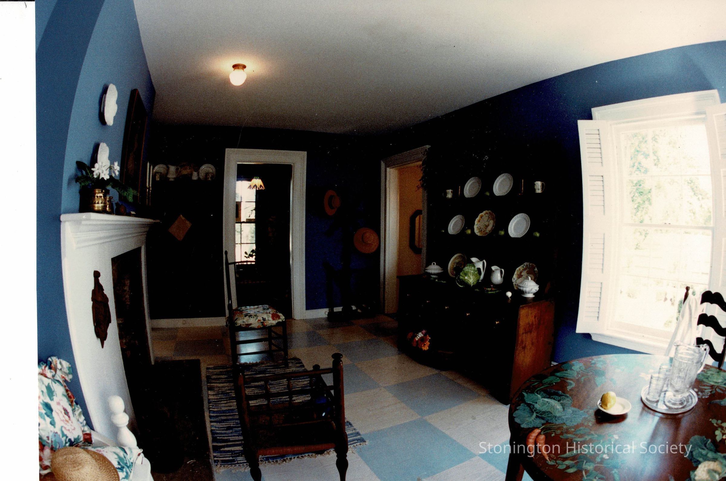 A view of the full room of furnishings in the Captain N.B. Palmer House when it was decorated for the Designer's Show House in 1989. This room was titled "A Lazy Summer Kitchen" and designed by Finitney & Company, out of West Hartford, CT. The room was originally designed as a laundry (1852).Collection