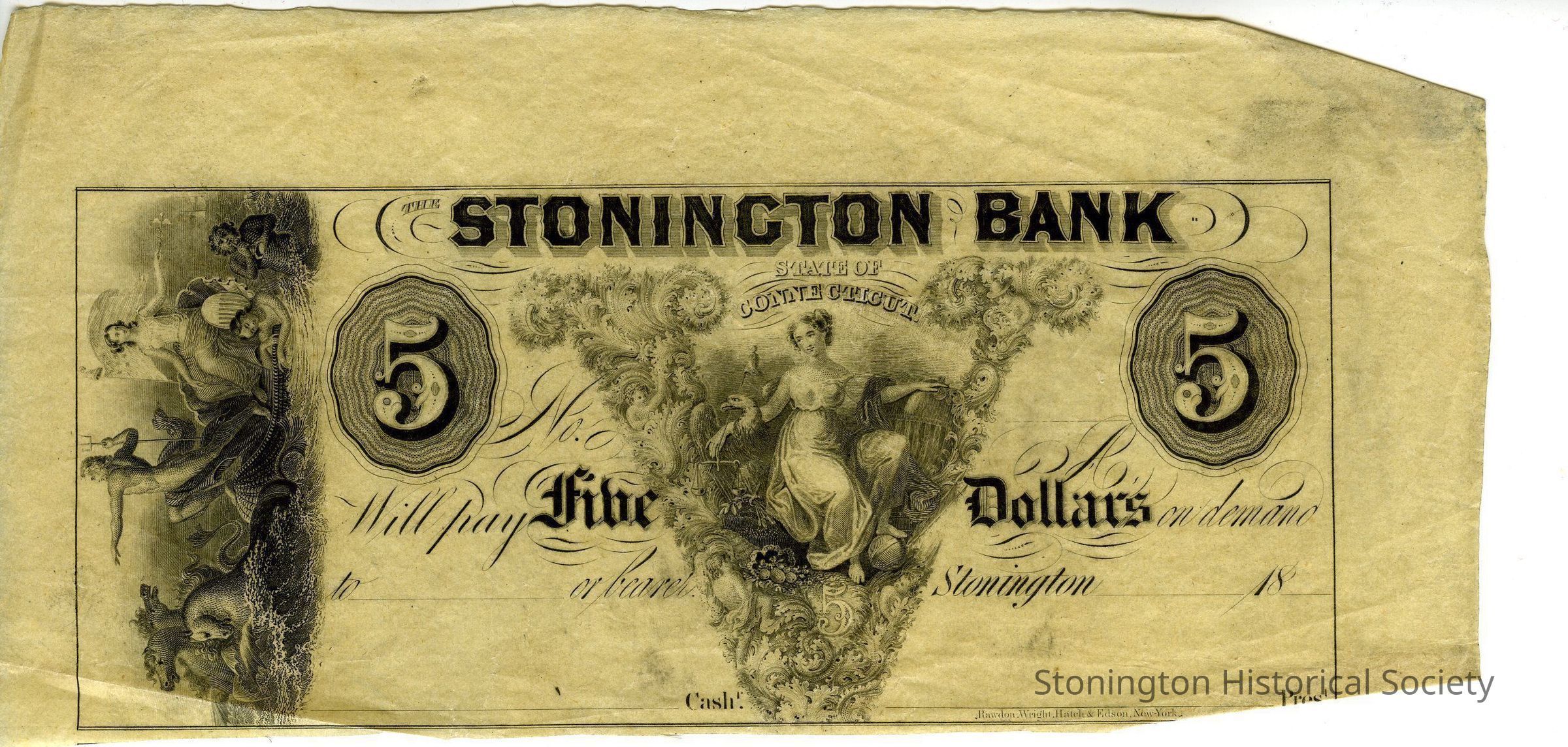 Single bank notes from Stonington Bank $5.00Entry/Object ID