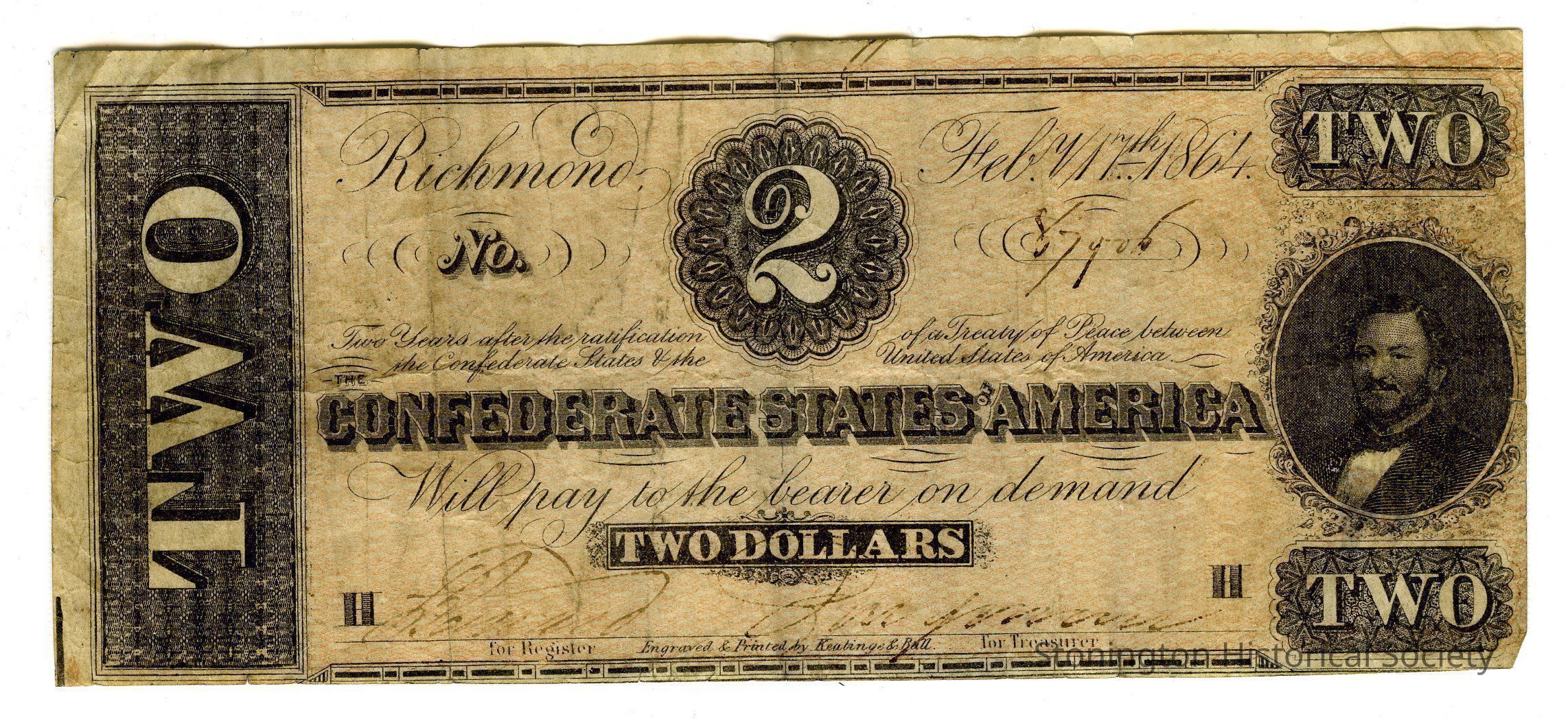 $2.00 Confederate States America No. 87906 Dated Richmond 17, 1864 Engraved & Printed by Keating & Ball