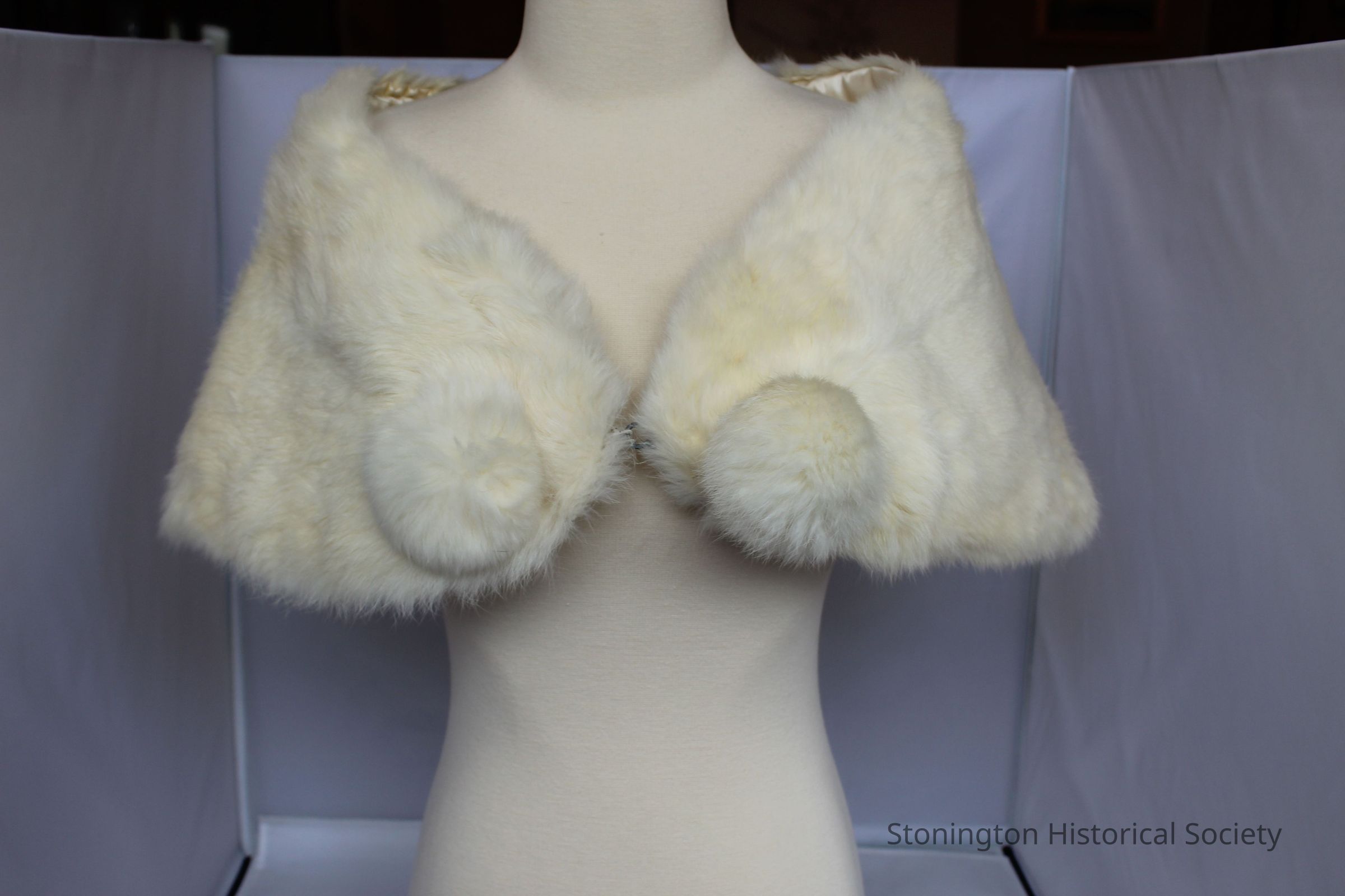 White, rabbit fur cape. Lined in satin. Belonged to Philomena DeSimone McShane.
