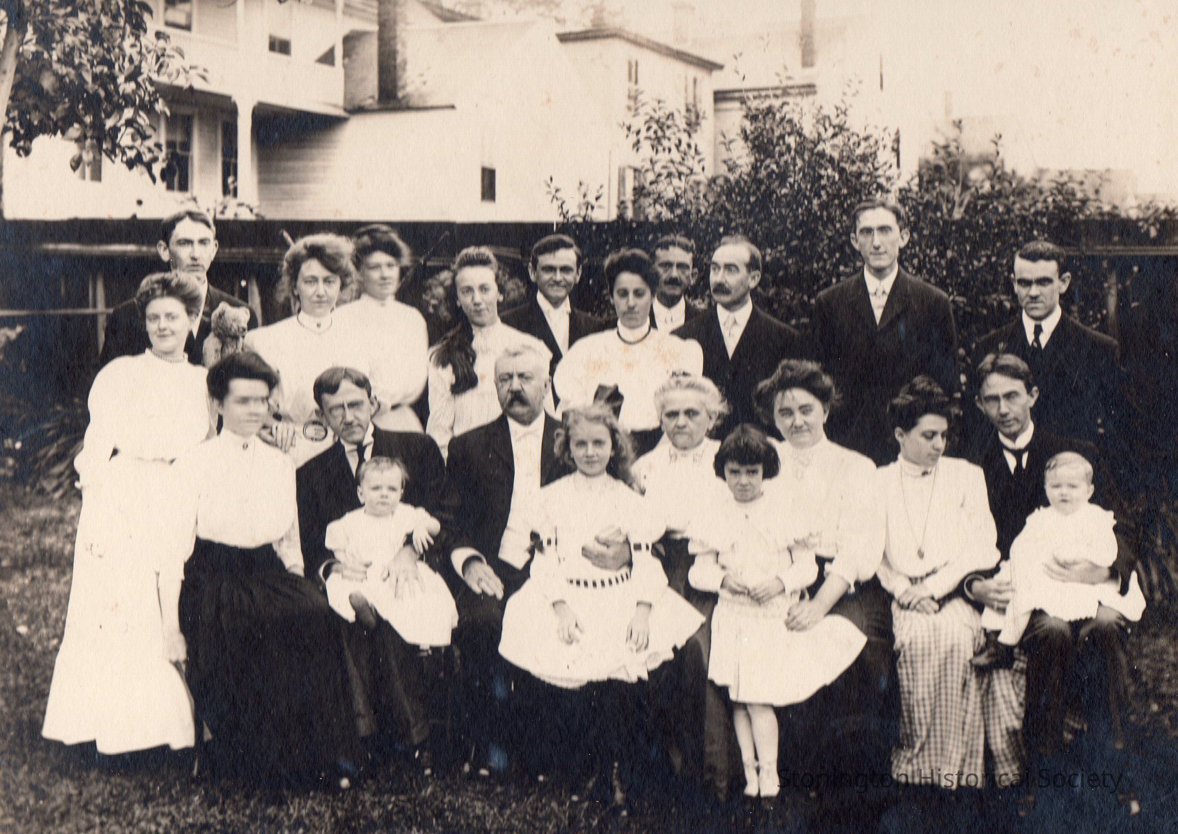 -photograph in protective sheet of Jerome and Emma Anderson, their children and their children's spouses, 1902. Identifying sheet is included on the back.