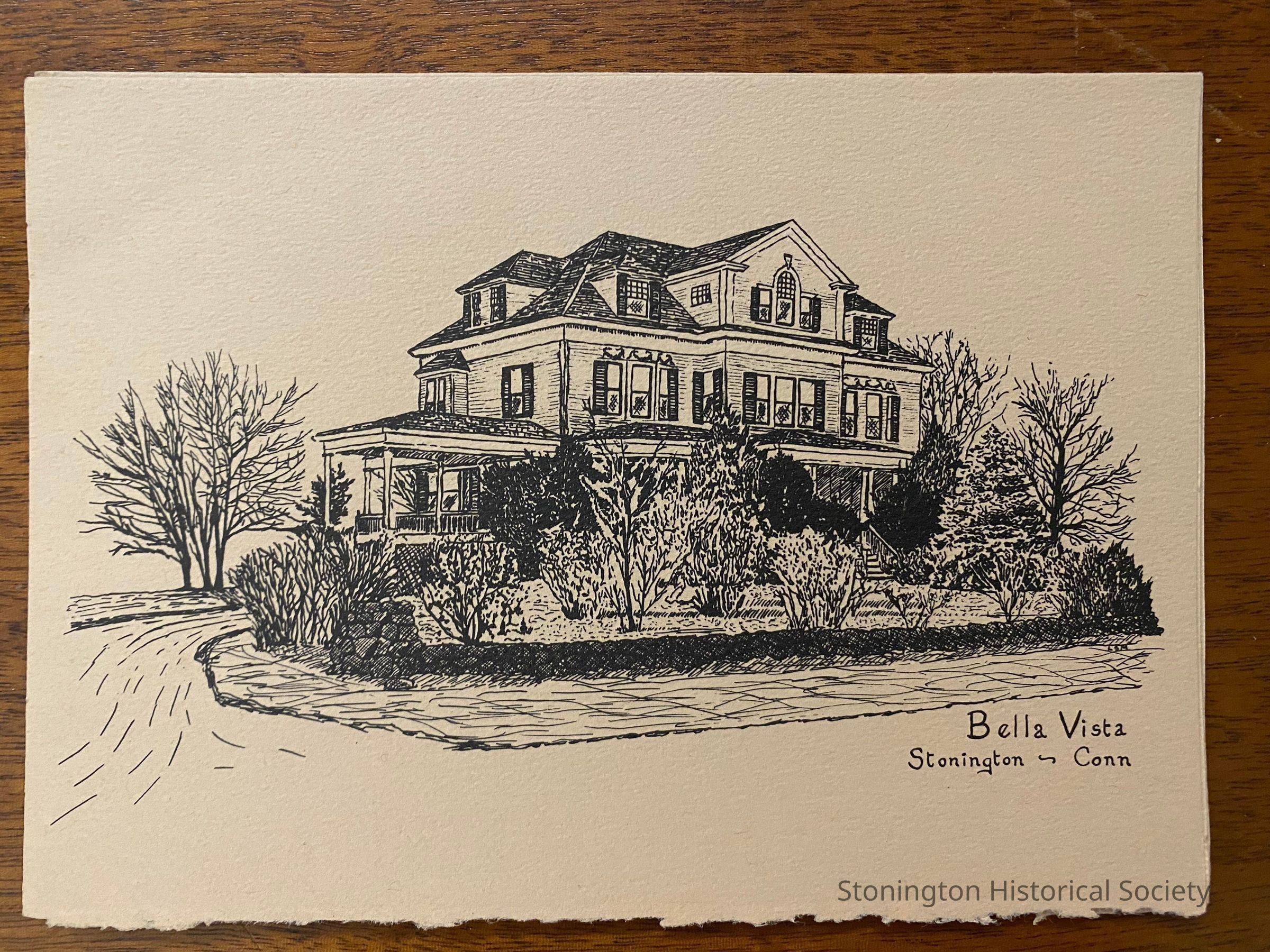 Ink drawing of the home at 166 Elm Street, Bella Vista, as a greeting card. Found in the home by owners Rae and Steven Singer. Artist unknown.Artwork Details