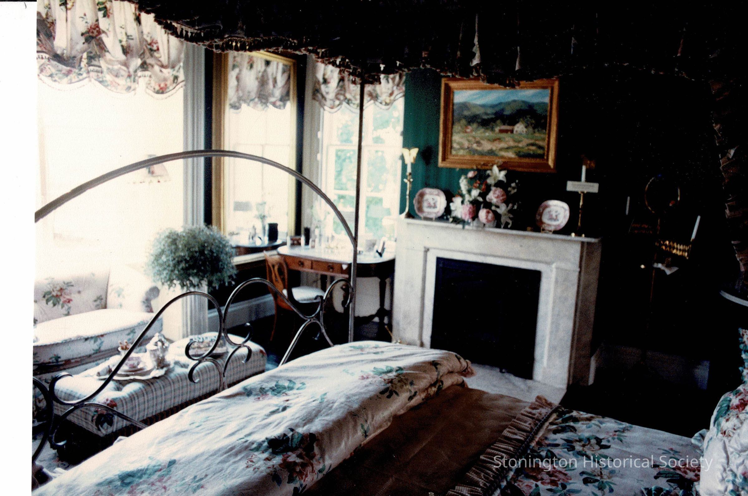 View of “A Midsummer Night’s Dream”, as it was decorated for the Designer’s Show House in 1989. This room was originally the bedroom of Captain Nathaniel B. Palmer’s brother, Alexander, when the house was completed in 1852. The room was reimagined in 1989 by Ann Glen Hotchkiss of Stonington.Collection