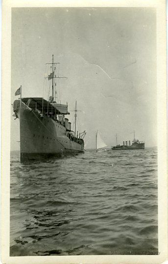 Destroyer TERRY in harbor with another military vessel and sailboat in background