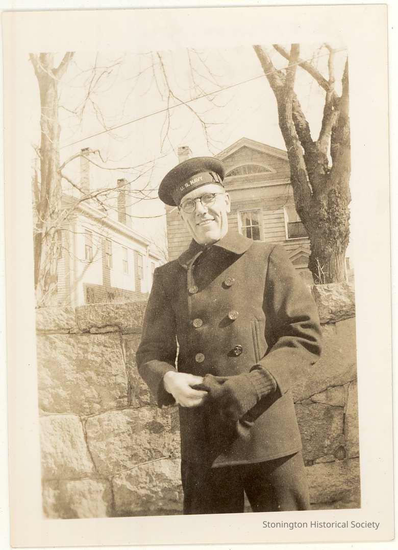 Photo of Jerome S. Anderson, Yeoman 2nd class. Photo is dated 3/1/44 with note: The day he left Stonington "for the duration".