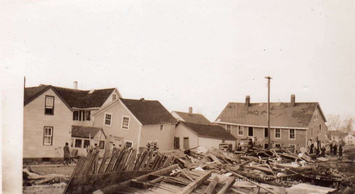Black and white photograph, view of damage from the 1938 Hurricane along Hancox Street. From photograph album of Bertha D'Amico.