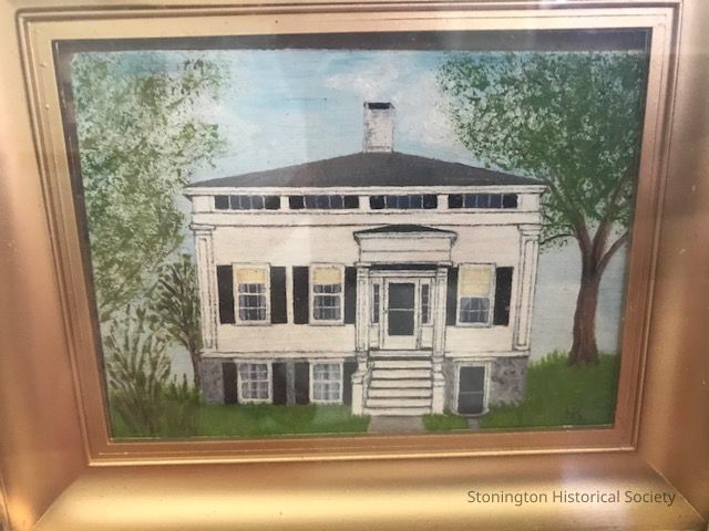 Miniature framed painting of unknown house on Wamphassuc Point, dated 1810. No surrounding buildings are pictured. Painting measures approximately 4 x3 inches.Collection
