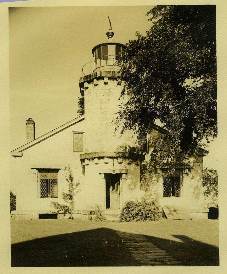 Front view of the lighthouse with tree on the right. Date unknown, probably taken around 1910.